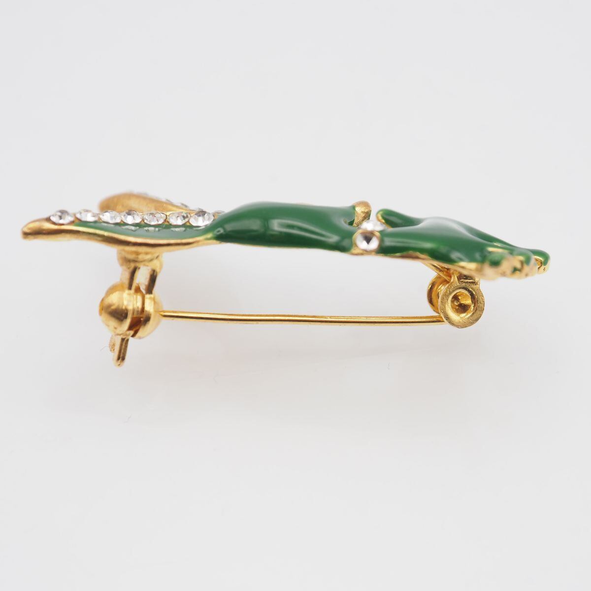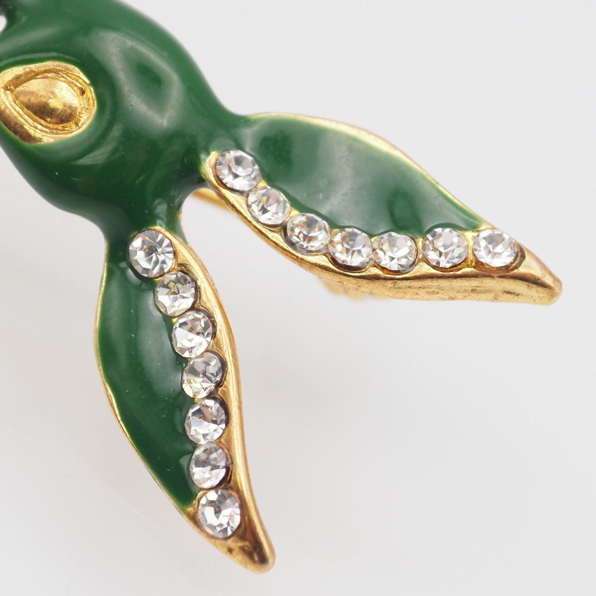K687 ブローチ 小鹿 シカ アニマル ラインストーン グリーンエナメル ゴールド デザイン コスチュームジュエリー