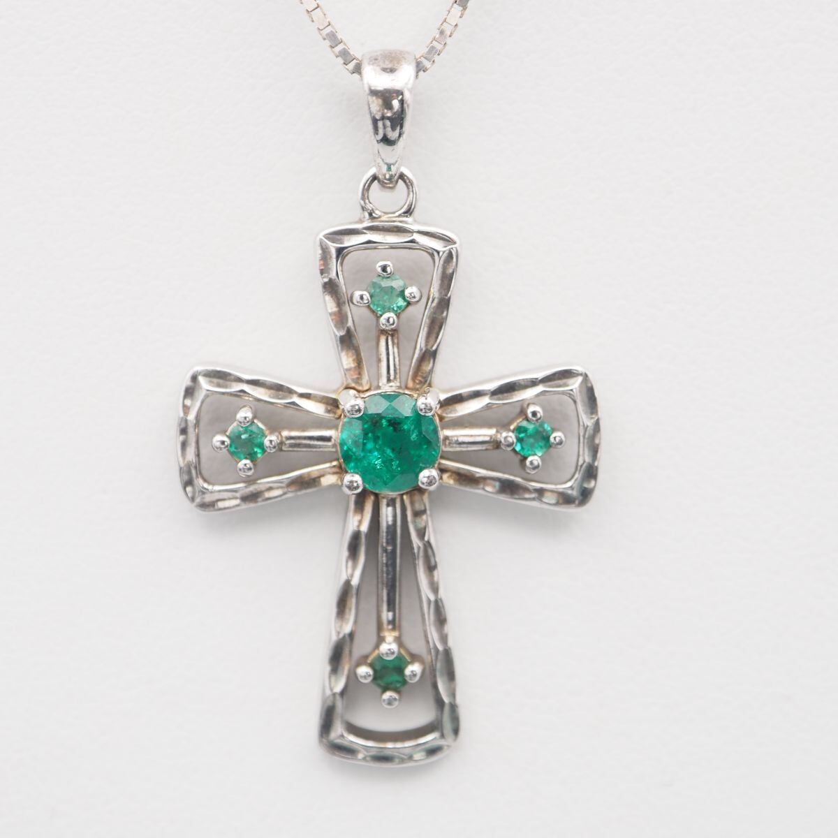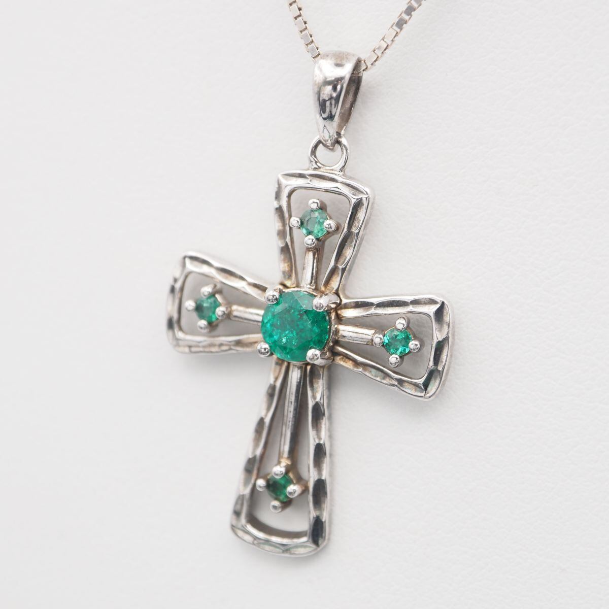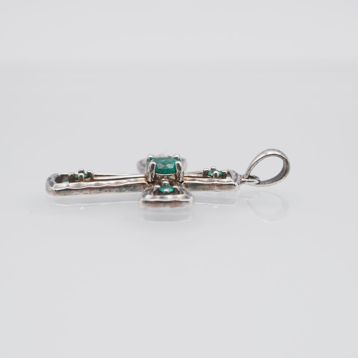G670 グリーンストーン 925刻印 ペンダント トップ クロス デザイン シルバー チャーム ヘッド ヴィンテージ