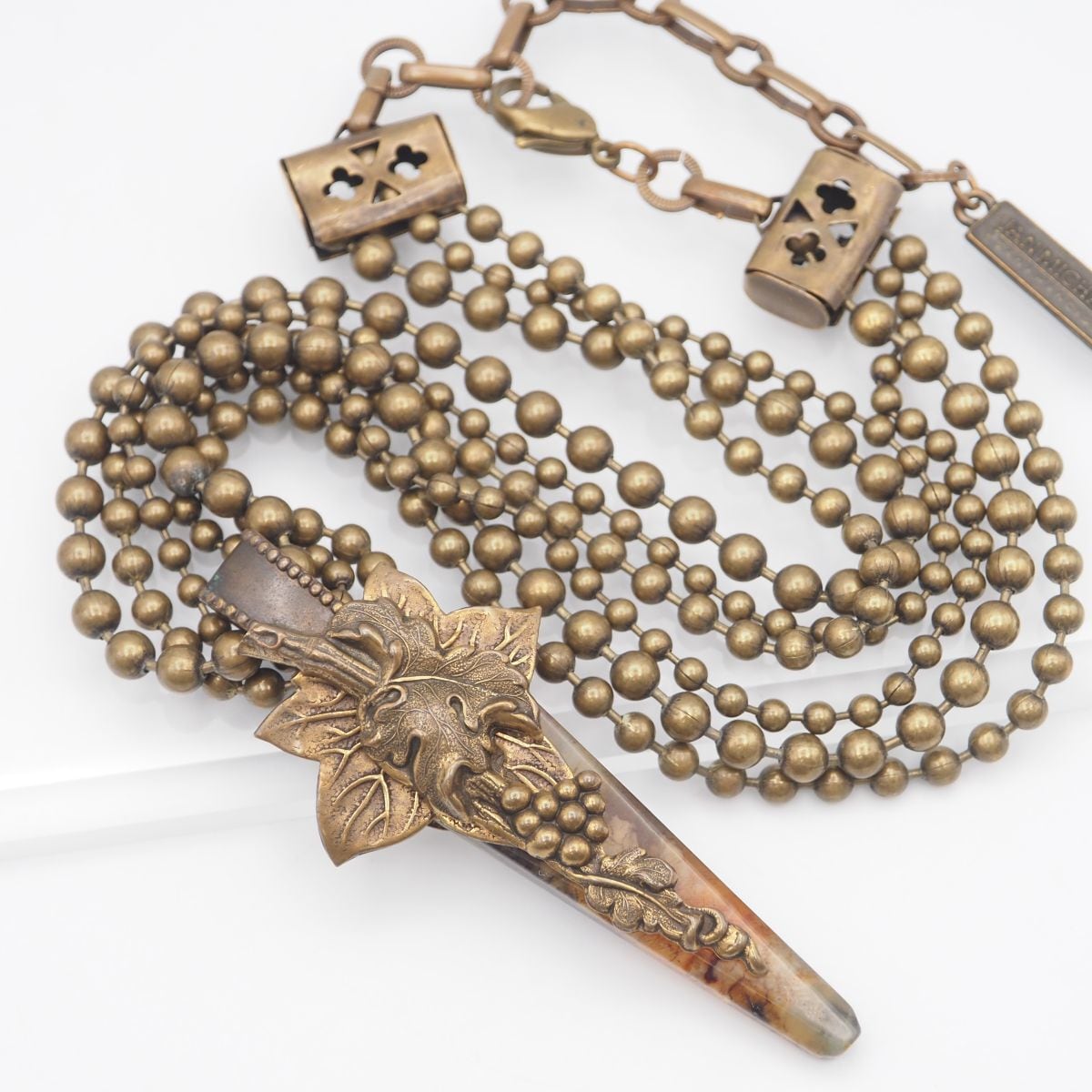 J196 JAN MICHAELS SAN FRANCISCO刻印 ペンダント ネックレス 天然石 ゴールド デザイン ジャンマイケル アンティーク USAヴィンテージ