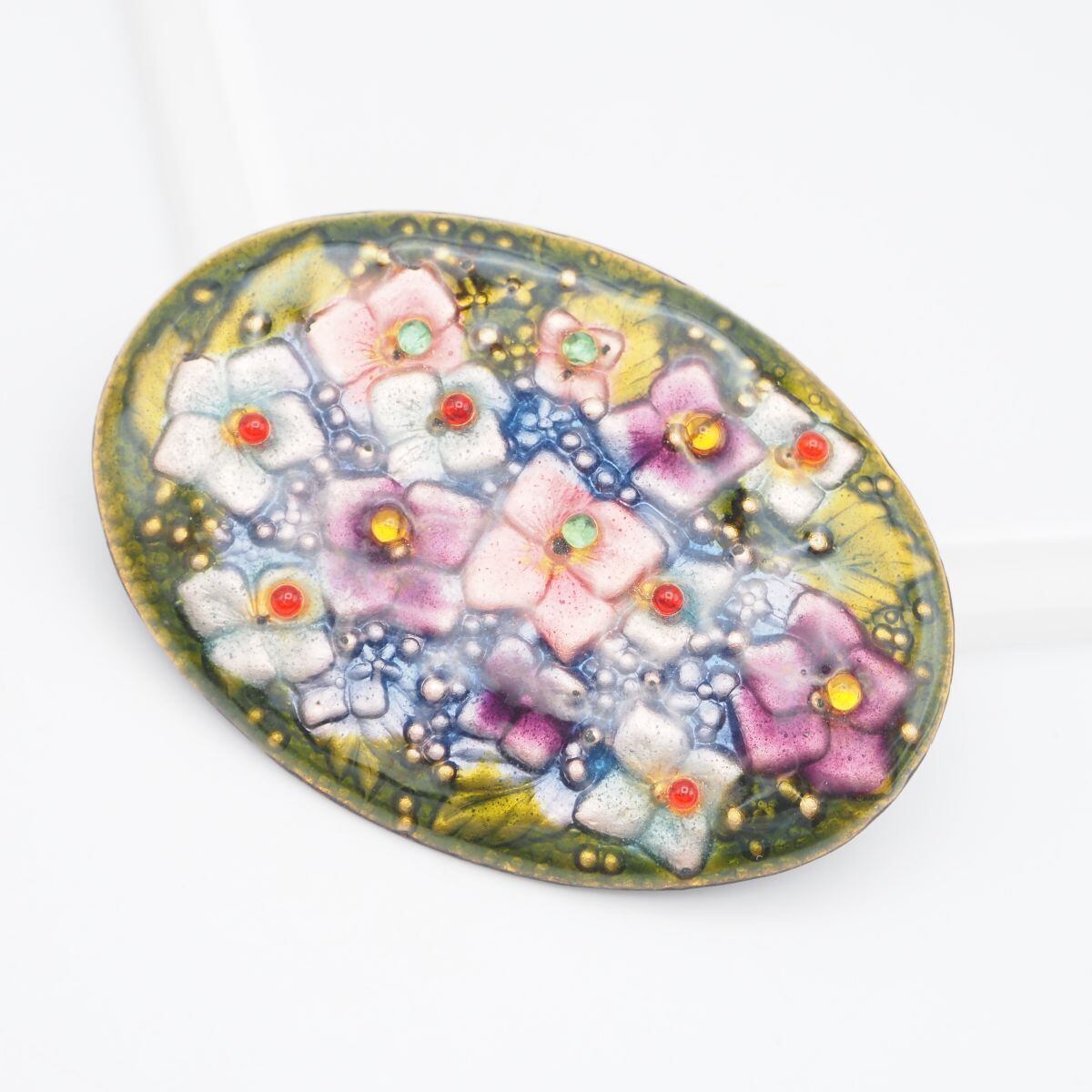 J288 七宝 ブローチ フラワー マルチカラー デザイン ヴィンテージ