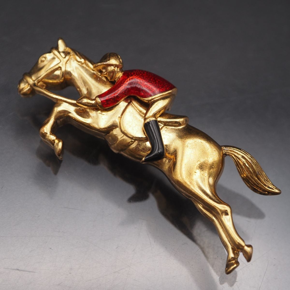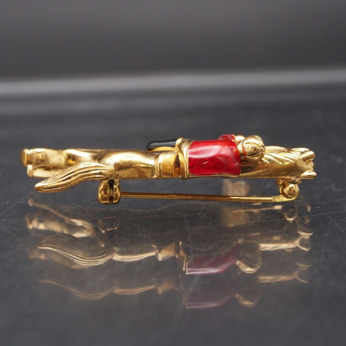 J271 ブローチ 馬 ホース 乗馬 レッド ブラック エナメル ゴールド デザイン コスチュームジュエリー