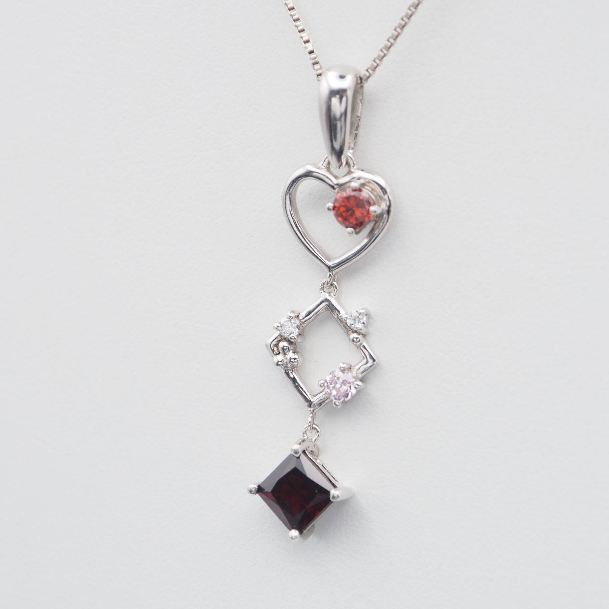 J244 ガーネット 等 カラーストーン SV刻印 ペンダント トップ ハート デザイン シルバー チャーム ヘッド 1月誕生石