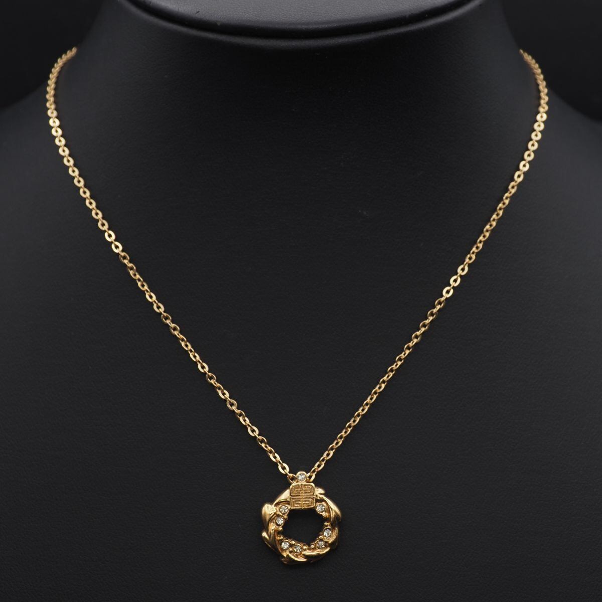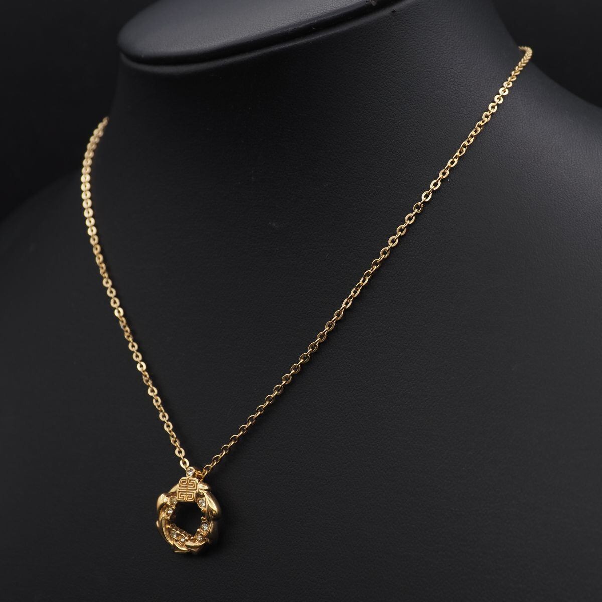 A080 ジバンシイ GIVENCHY ペンダント ネックレス ロゴ ラインストーン ゴールド デザイン