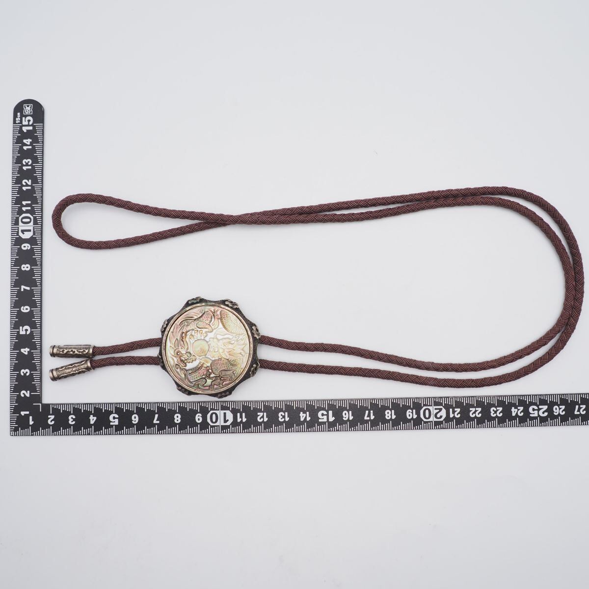 A042 シェルカメオ Shell Cameo KOREA刻印 ループタイ 龍 ドラゴン 彫刻 デザイン シルバー 紐タイ ネックレス アンティーク