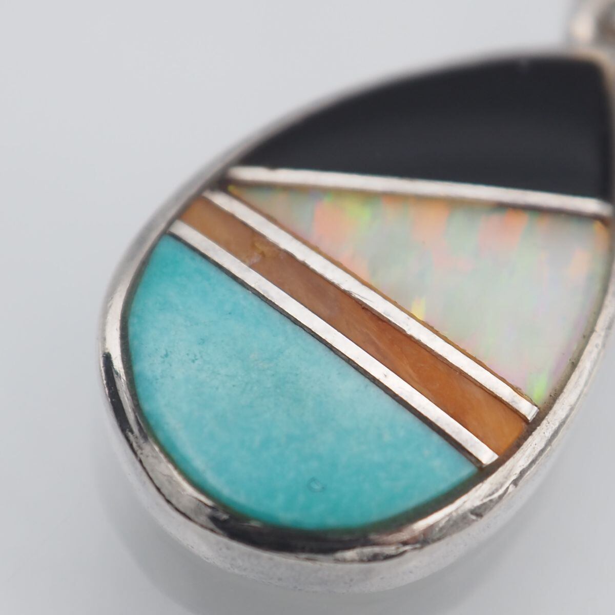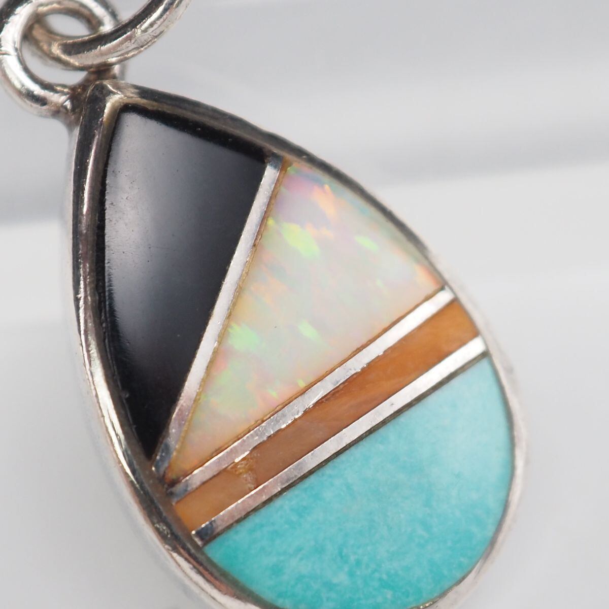 A409 ターコイズ トルコ石 オニキス オパール ペンダント トップ インレイ デザイン シルバー チャーム ヘッド ヴィンテージ