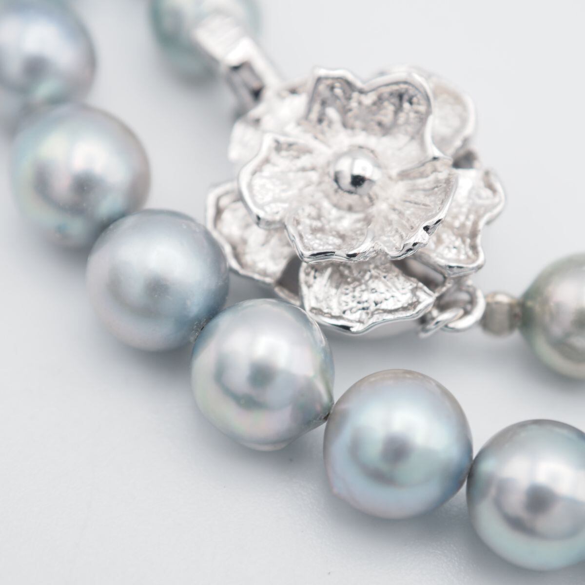 A323 本真珠 6.5mm珠 パール SILVER刻印 ネックレス ブルー系カラー デザイン シルバー 6月誕生石