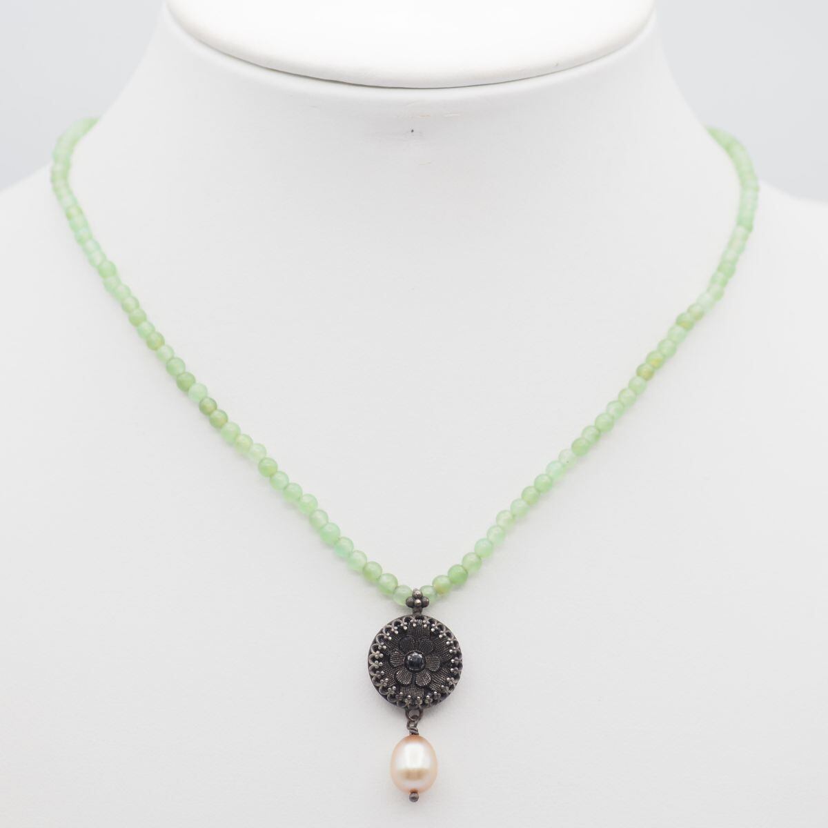 A707 Kay 淡水真珠 パール グリーンストーン 925刻印 ペンダント ネックレス フラワー デザイン シルバー