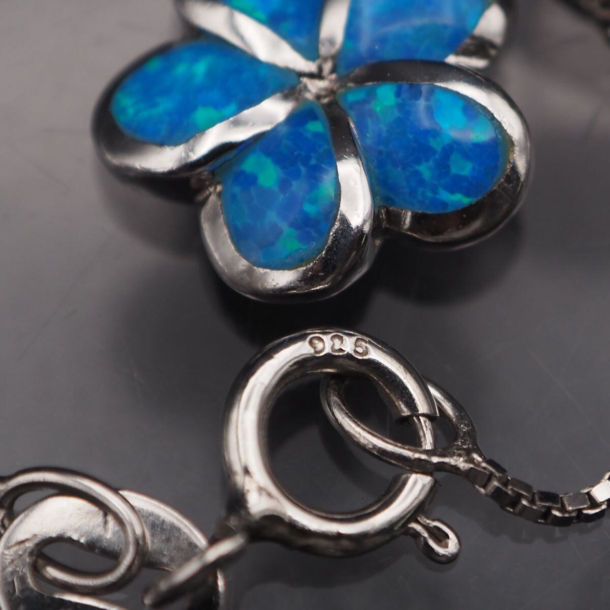 G686 ハワイアンジュエリー オパール K S925 ITALY刻印 ペンダント ネックレス プルメリア インレイ デザイン シルバー 10月誕生石