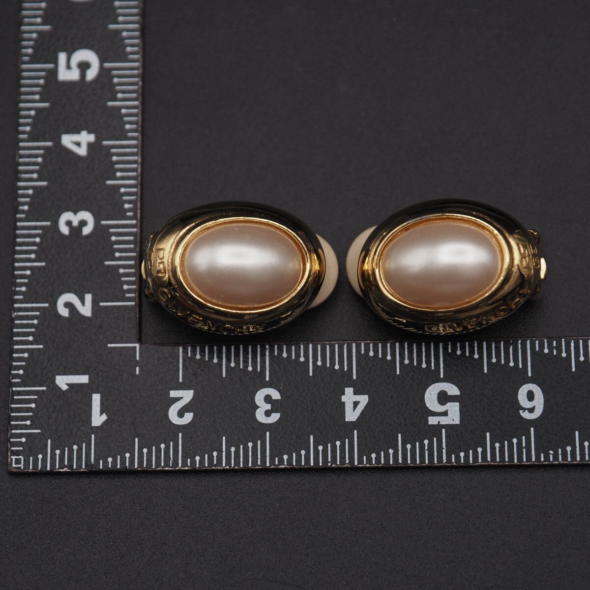 B062 ジバンシイ GIVENCHY PARIS NEW YORK イヤリング フェイクパール ロゴ ゴールド デザイン