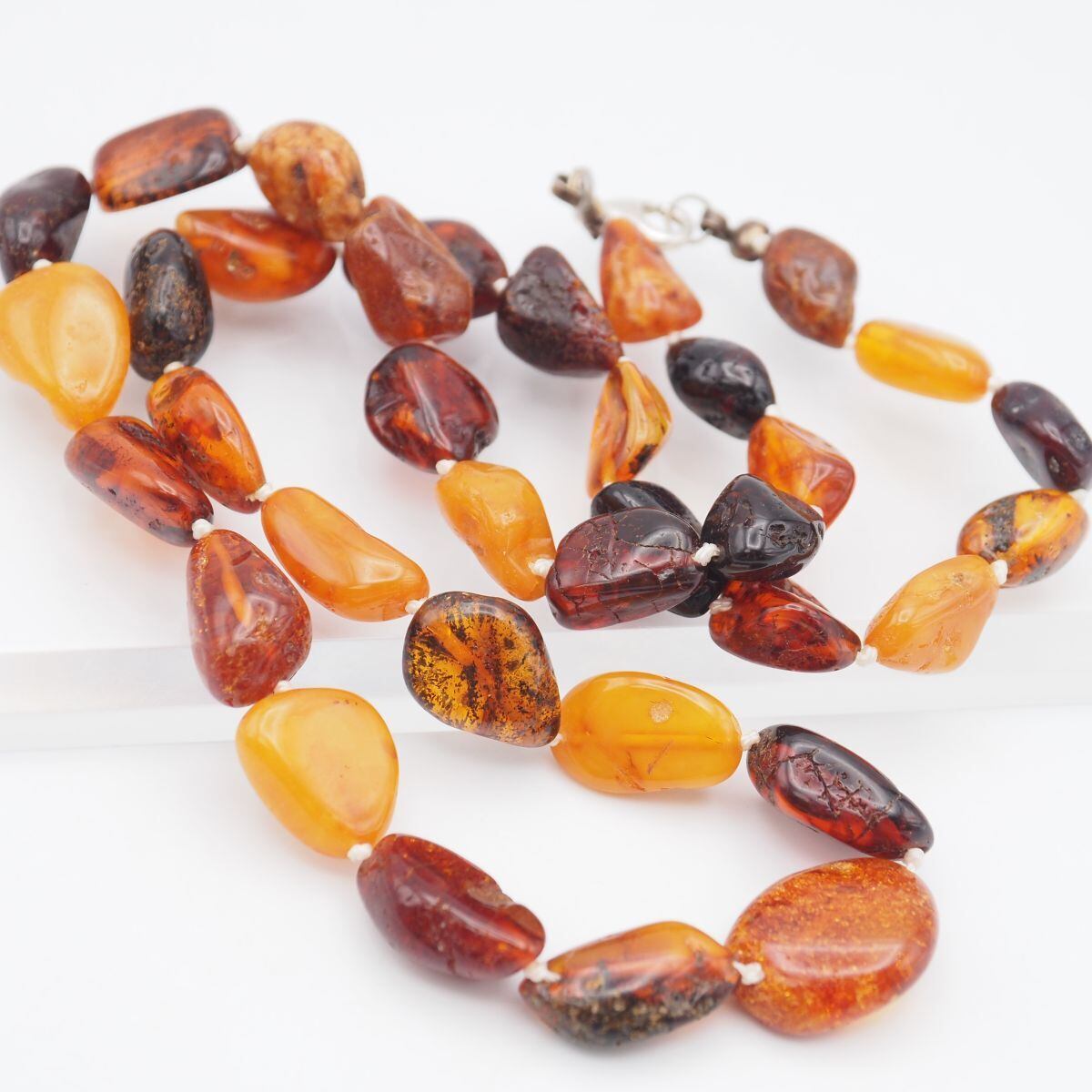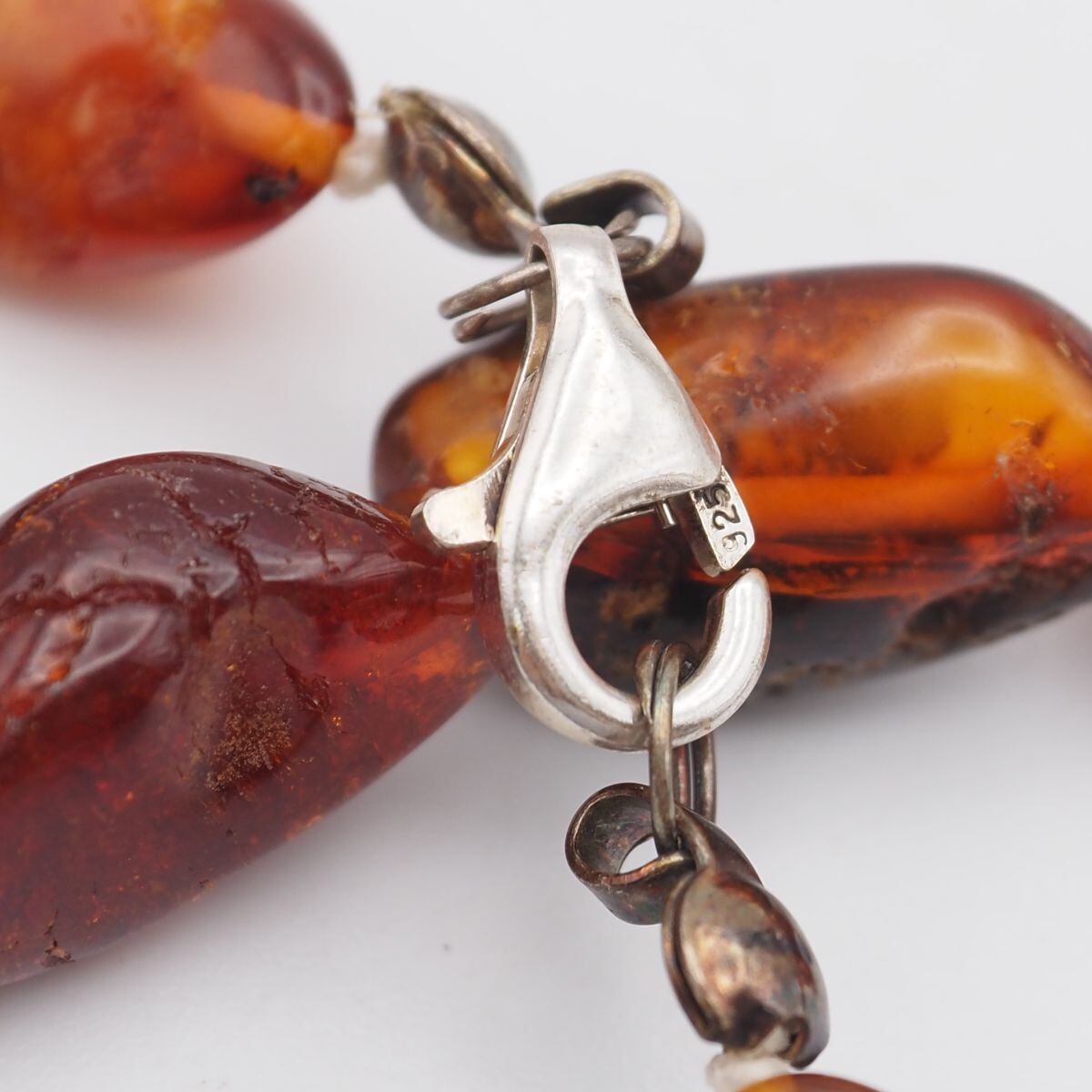 B247 琥珀 コハク 925刻印 ネックレス ミックスカラー デザイン シルバー ヴィンテージ