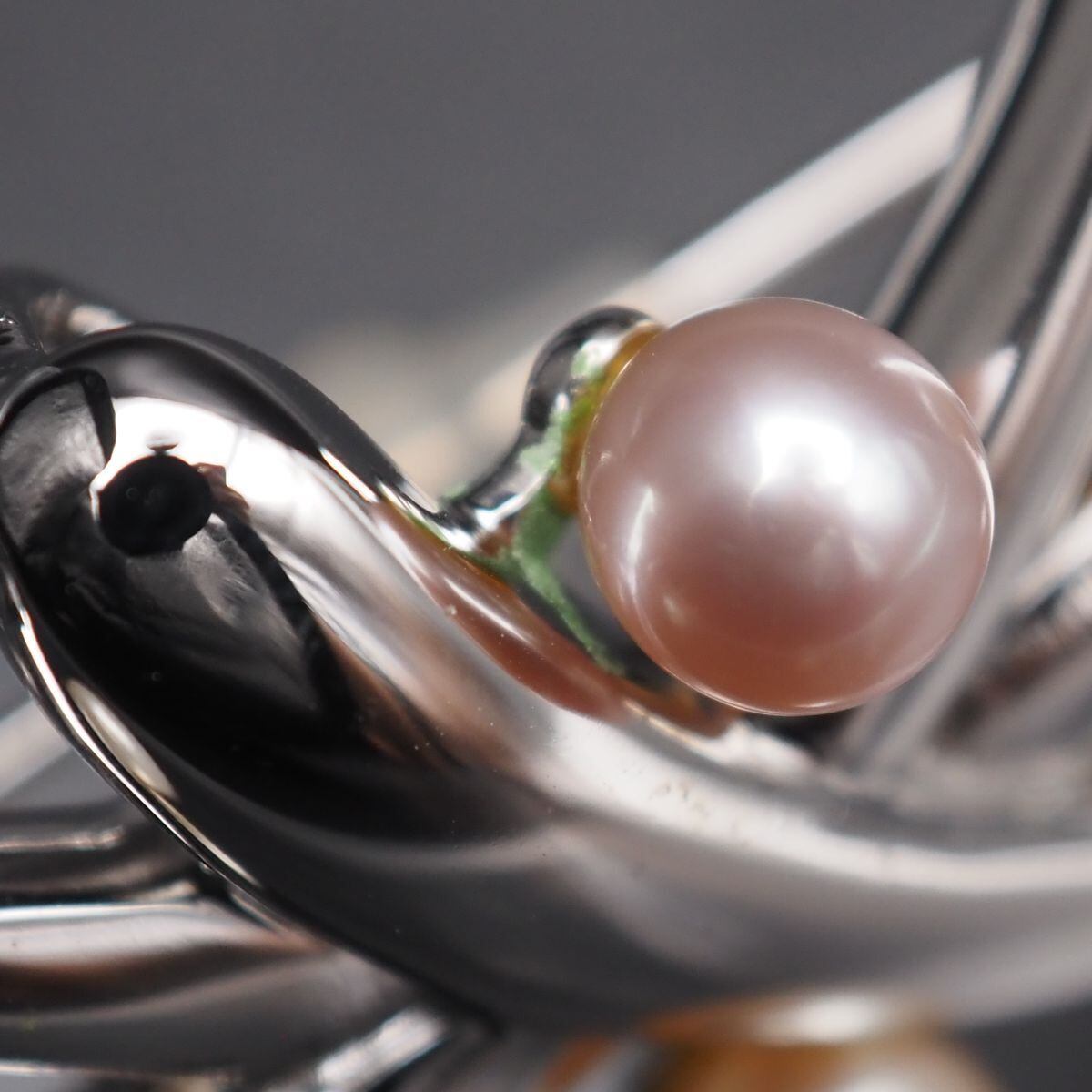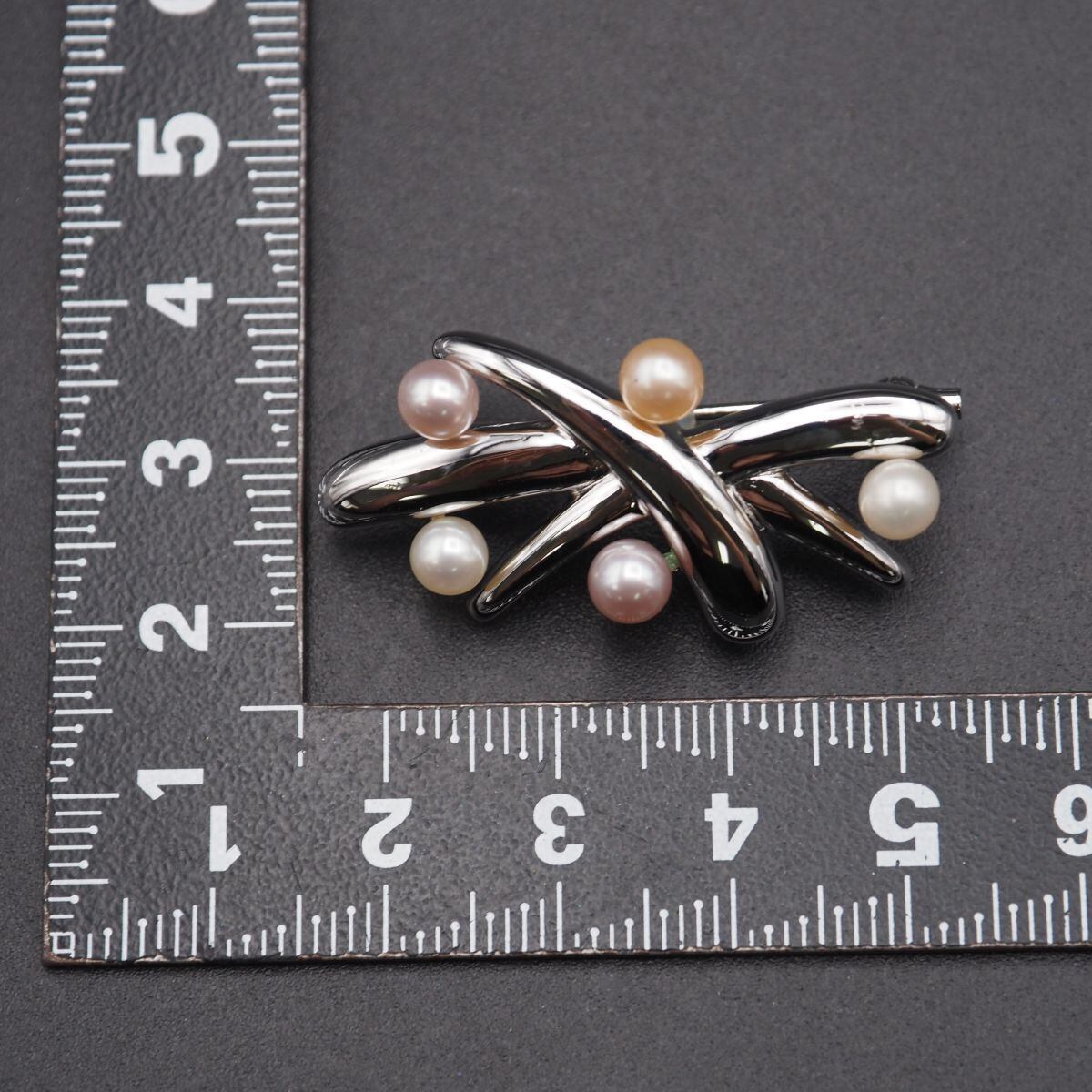 B433 淡水真珠 パール SILVER刻印 ブローチ マルチカラー デザイン シルバー コサージュ 6月誕生石