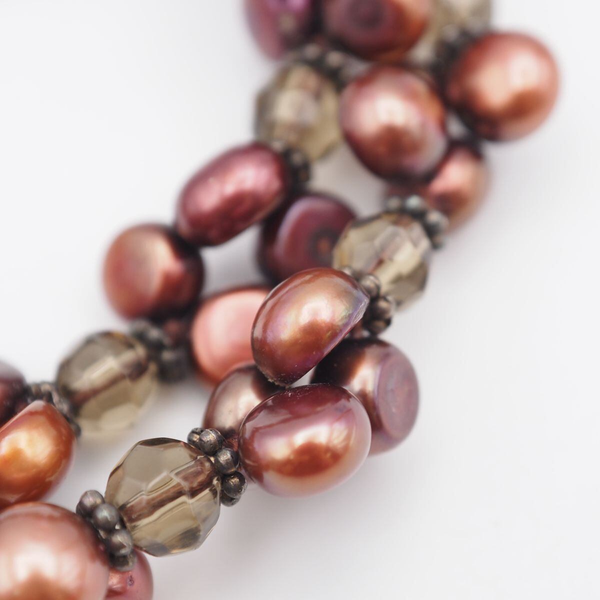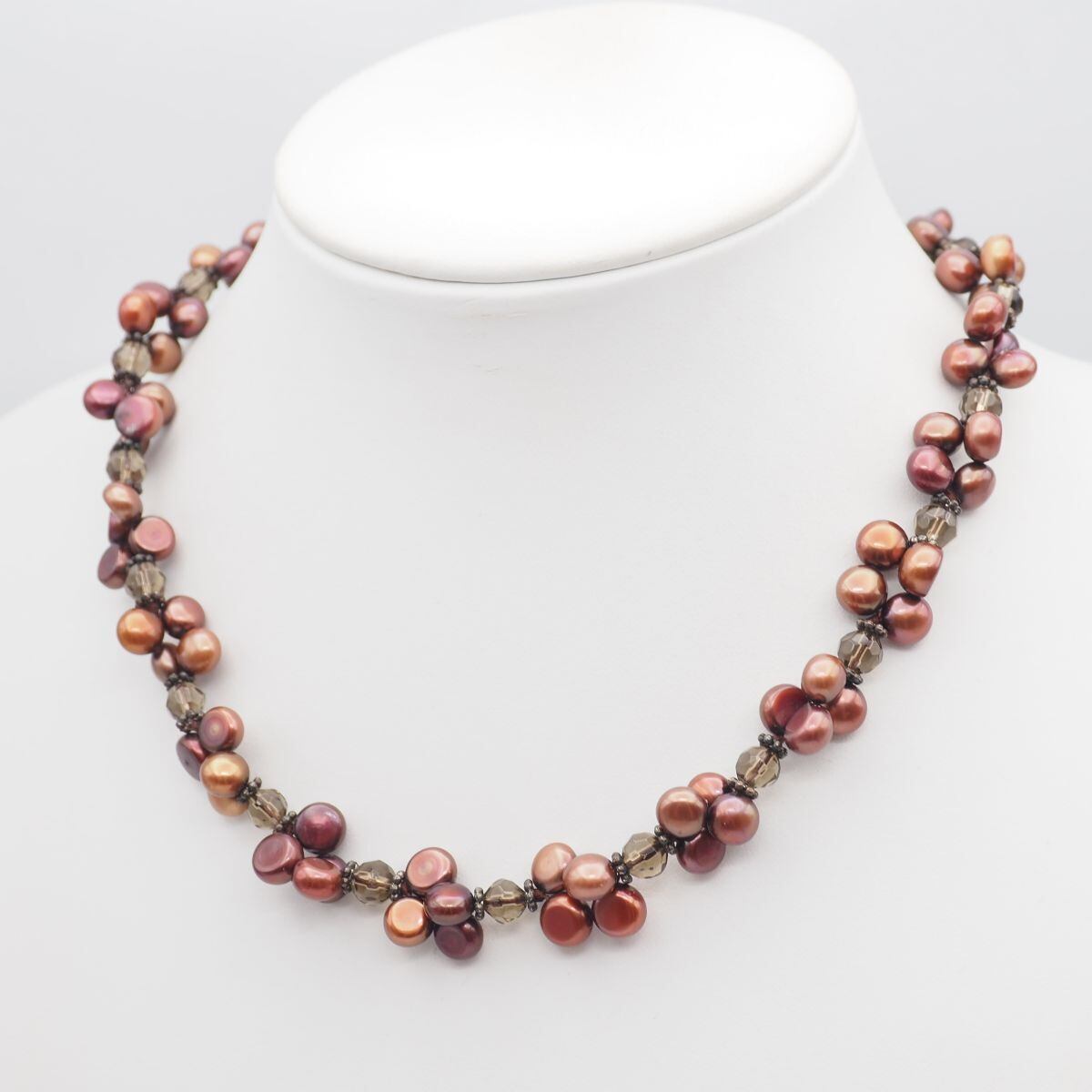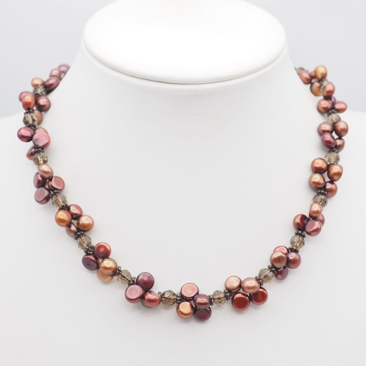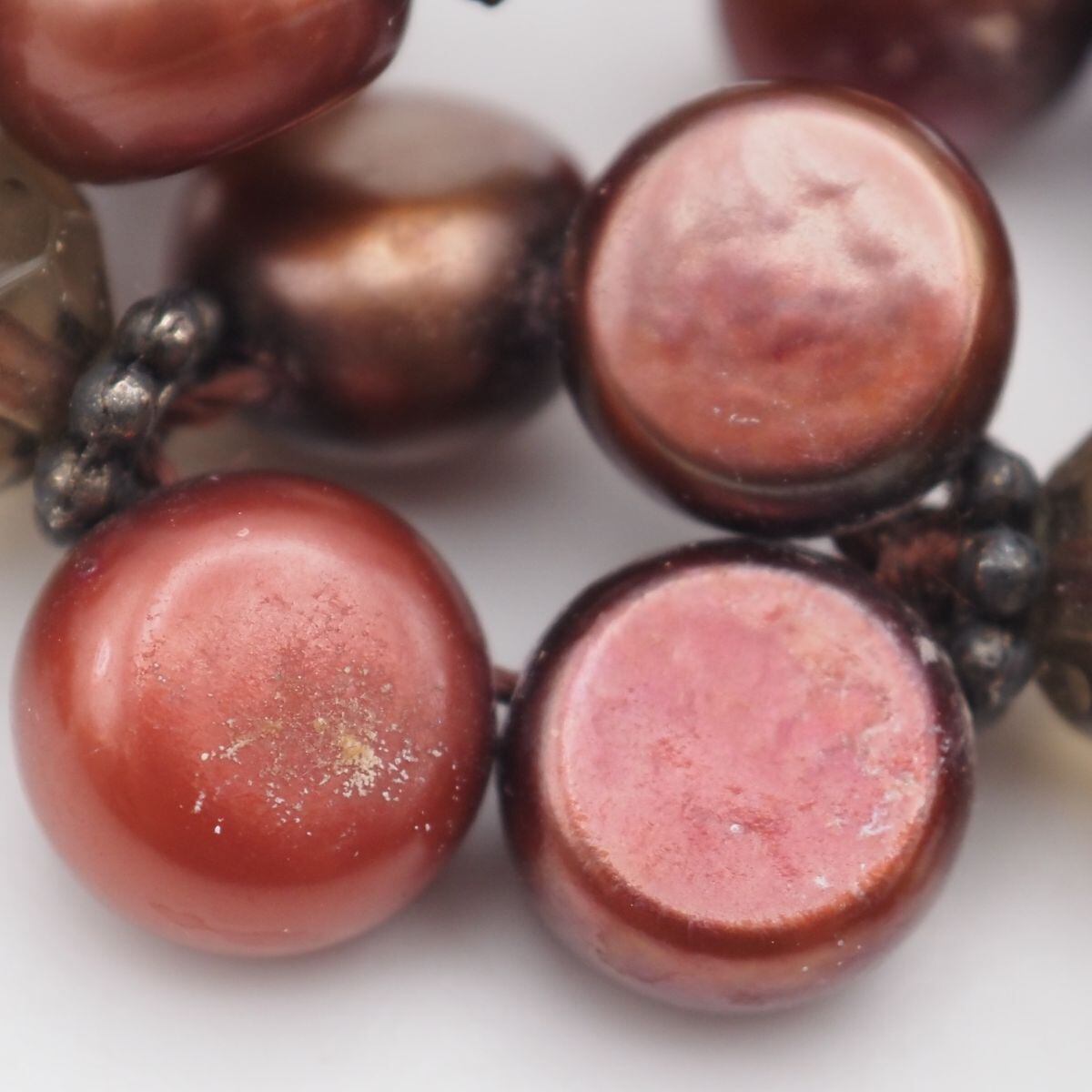 B226 淡水真珠 パール スモーキークォーツ ネックレス レッド ブラウン系カラー デザイン シルバー 6月誕生石