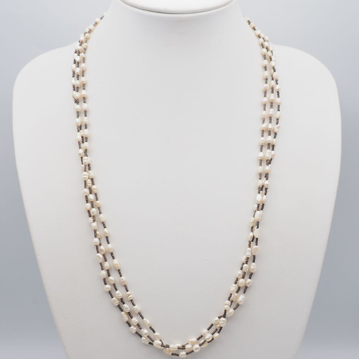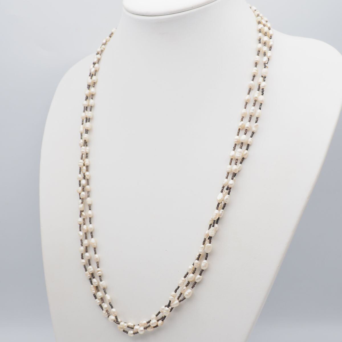 B616 淡水真珠 パール ネックレス 3連 デザイン シルバー ヴィンテージ 6月誕生石