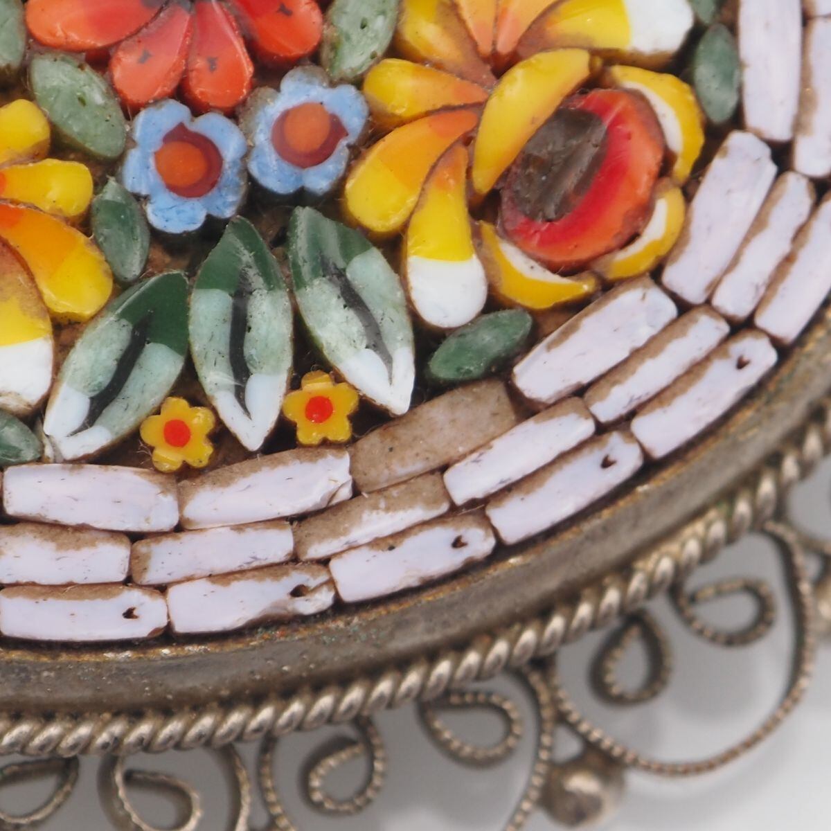 B778 モザイクガラス ブローチ フラワー フィリグリー 銀線細工 デザイン シルバー