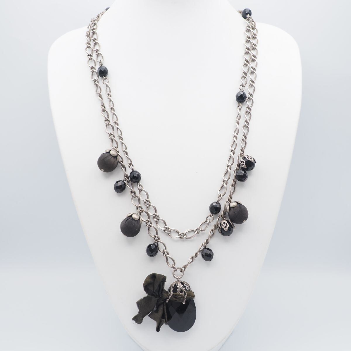 B791 rada ラダ MADE IN ITALY刻印 ネックレス オニキス風 2連 デザイン シルバー イタリア製