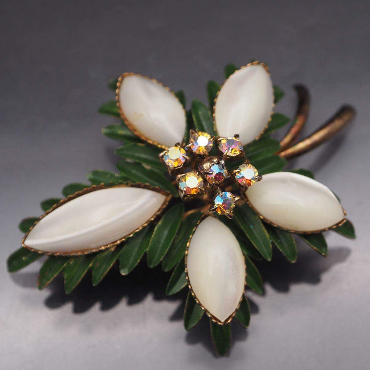 B471 ブローチ フラワー カラーストーン風 ゴールド デザイン コスチュームジュエリー