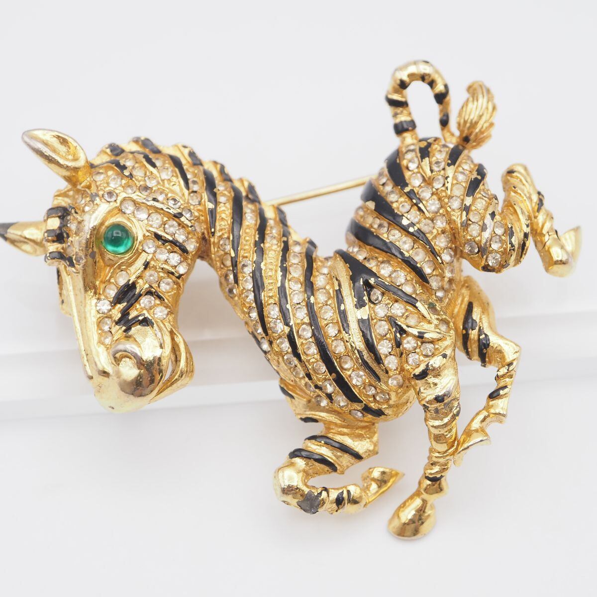 B871 ブローチ シマウマ ジブラ アニマル ラインストーン ゴールド デザイン コスチュームジュエリー