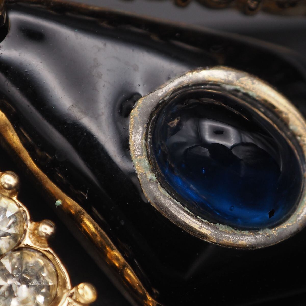 C004 CINER サイナー ブローチ 大ぶり カラーストーン風 マルチカラー ラインストーン ブラックエナメル ゴールド デザイン