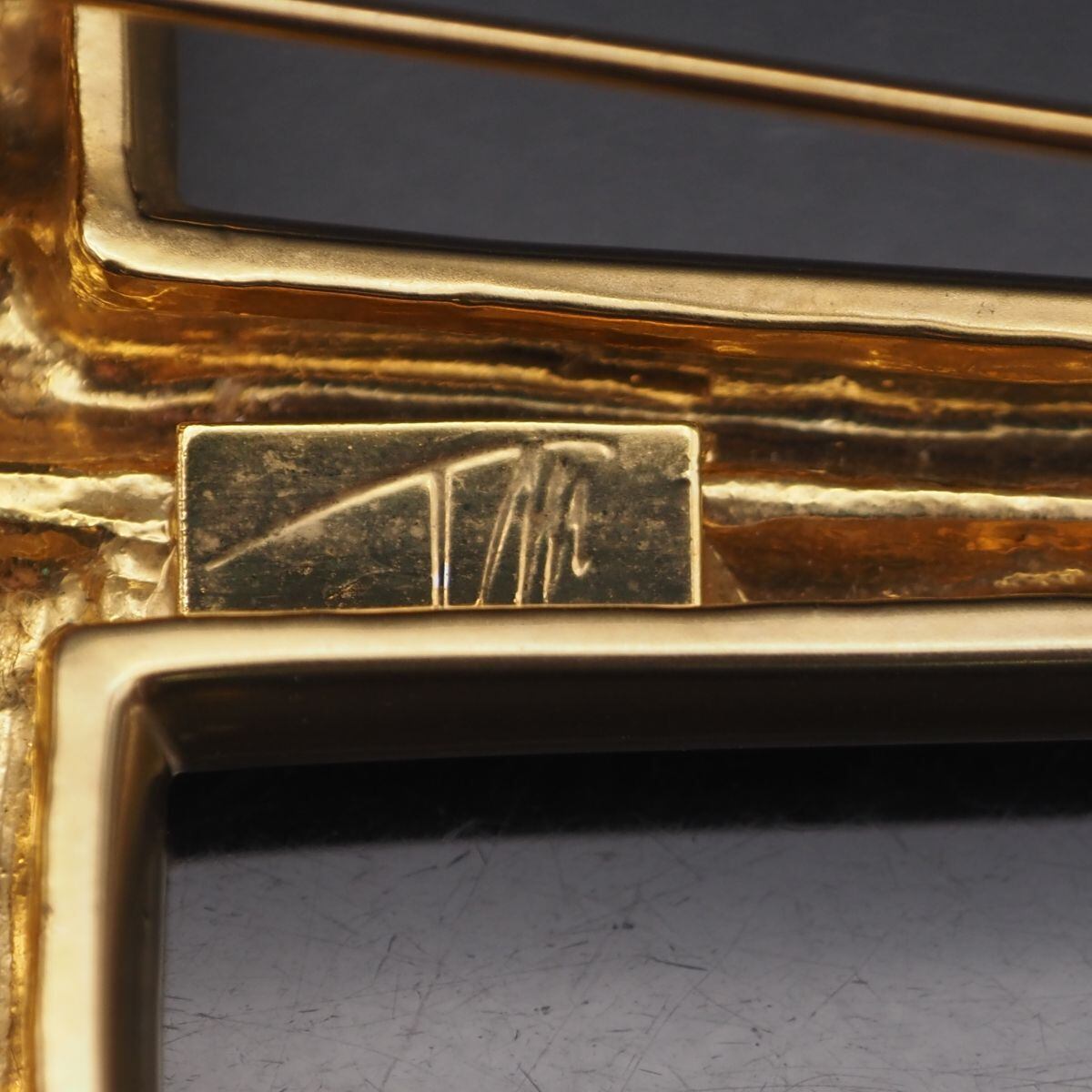 C016 Tm?刻印 ブローチ 大ぶり クロス ゴールド デザイン コスチュームジュエリー