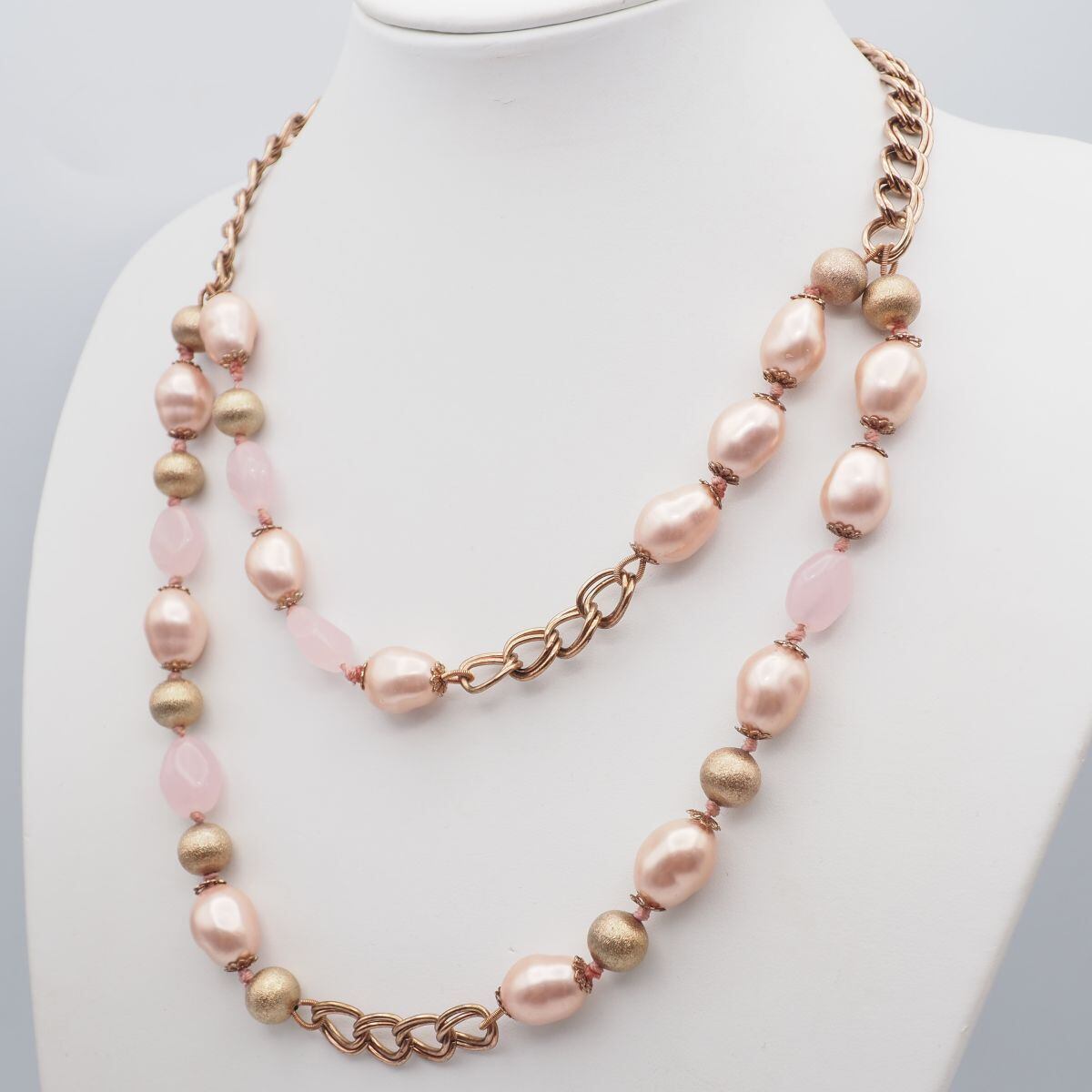 B508 MONET モネ ネックレス フェイクパール ピンクトーン風 2連 ピンクゴールド デザイン