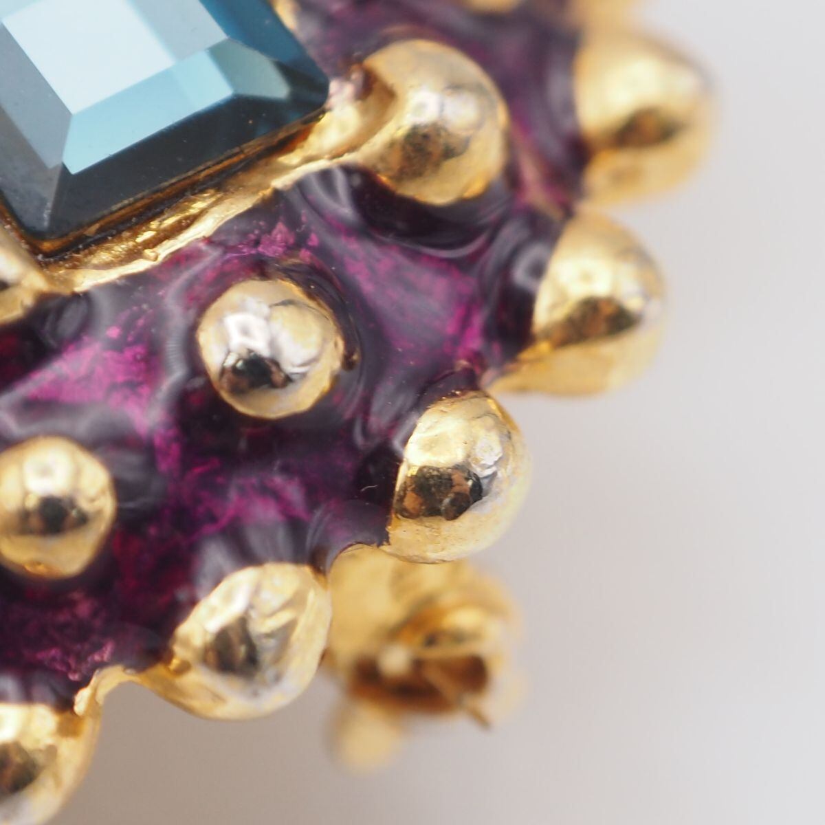 C046 ブローチ リンゴ アップル カラーストーン風 マルチカラー パープルエナメル ゴールド デザイン コスチュームジュエリー