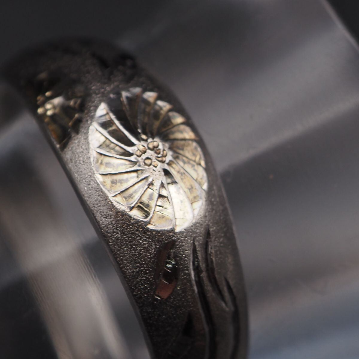 B681 ヴィンテージ 純銀 造幣局刻印 リング 花彫刻 デザイン シルバー 指輪 18号