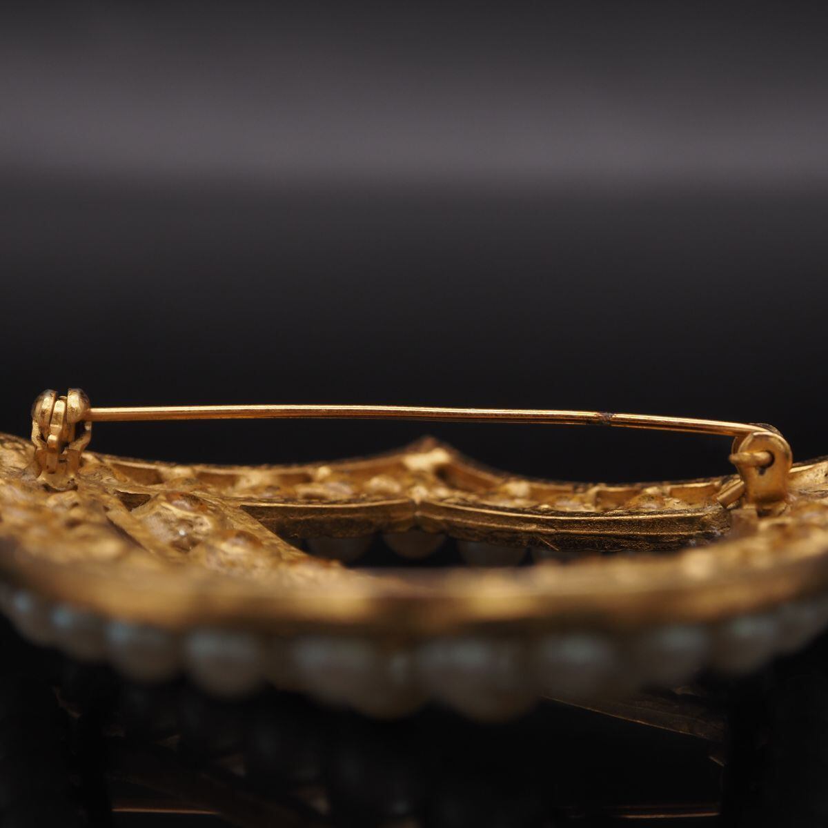 C348 ブローチ 大ぶり フェイクパール ゴールド デザイン コスチュームジュエリー