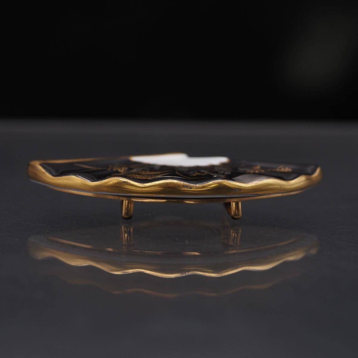 B835 OKURA 大倉陶園 SILVER925刻印 帯留め 陶器 扇子 秋草柄 すすき デザイン 和装小物