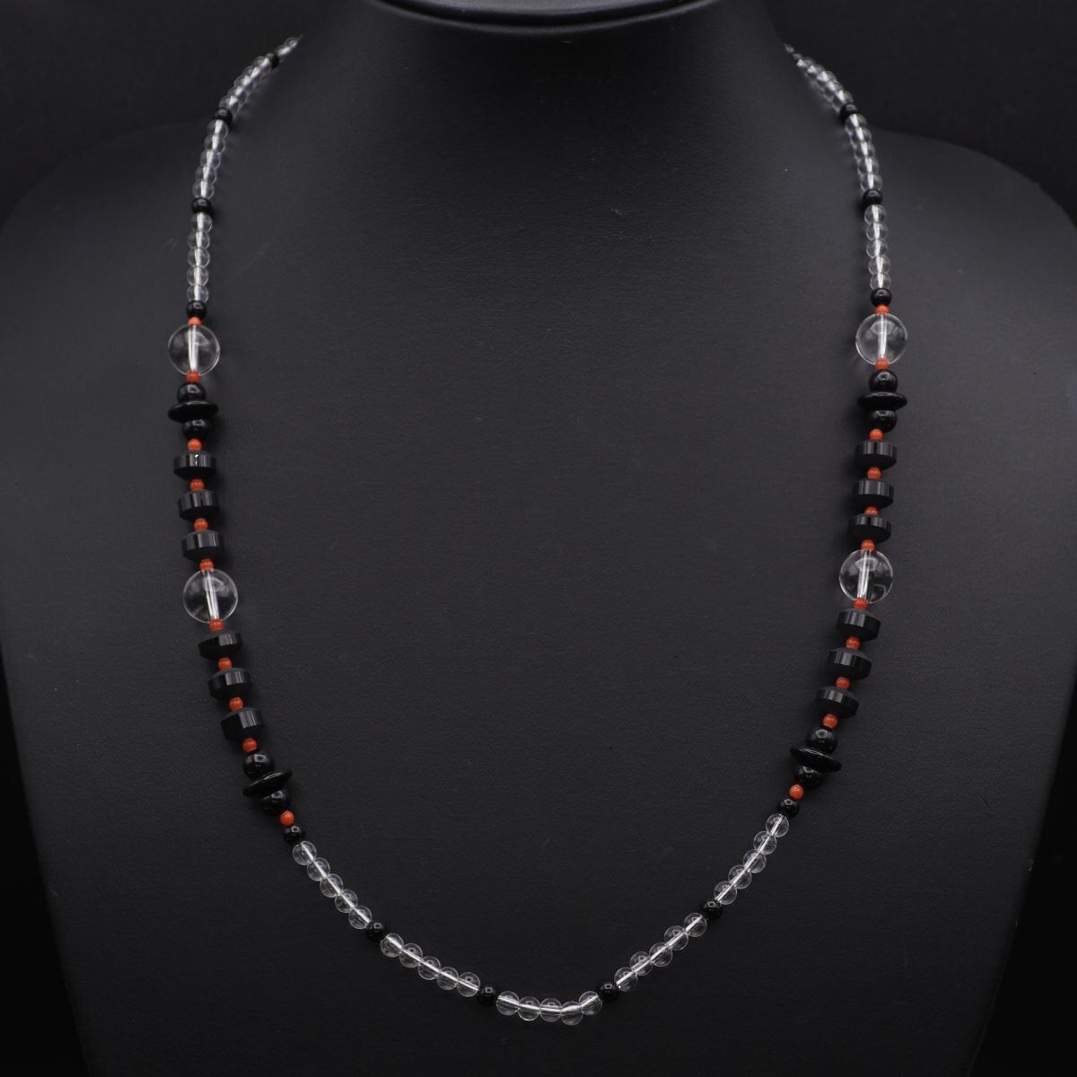 B842 オニキス 水晶 赤珊瑚 サンゴ STERLING SILVER925刻印 ネックレス デザイン シルバー 3月誕生石