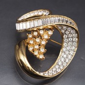 C322 A&S Attwood and Sawyer アトウッド&ソーヤー ブローチ ラインストーン ゴールド デザイン
