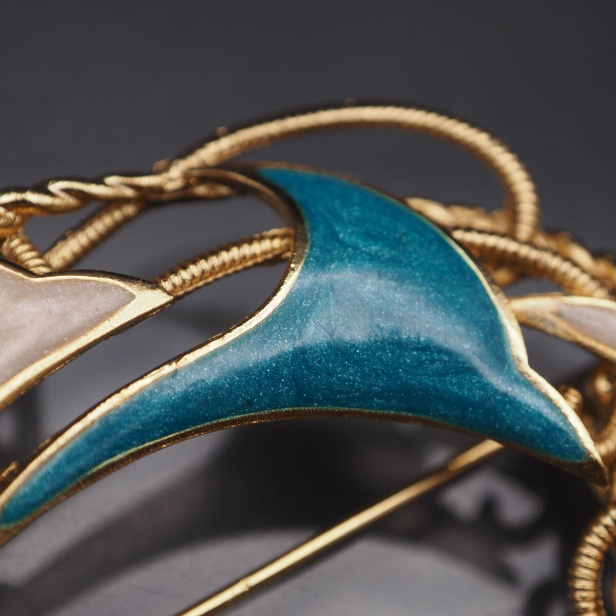 C003 HR Paris ブローチ 大ぶり ブルー ホワイト エナメル ゴールド デザイン