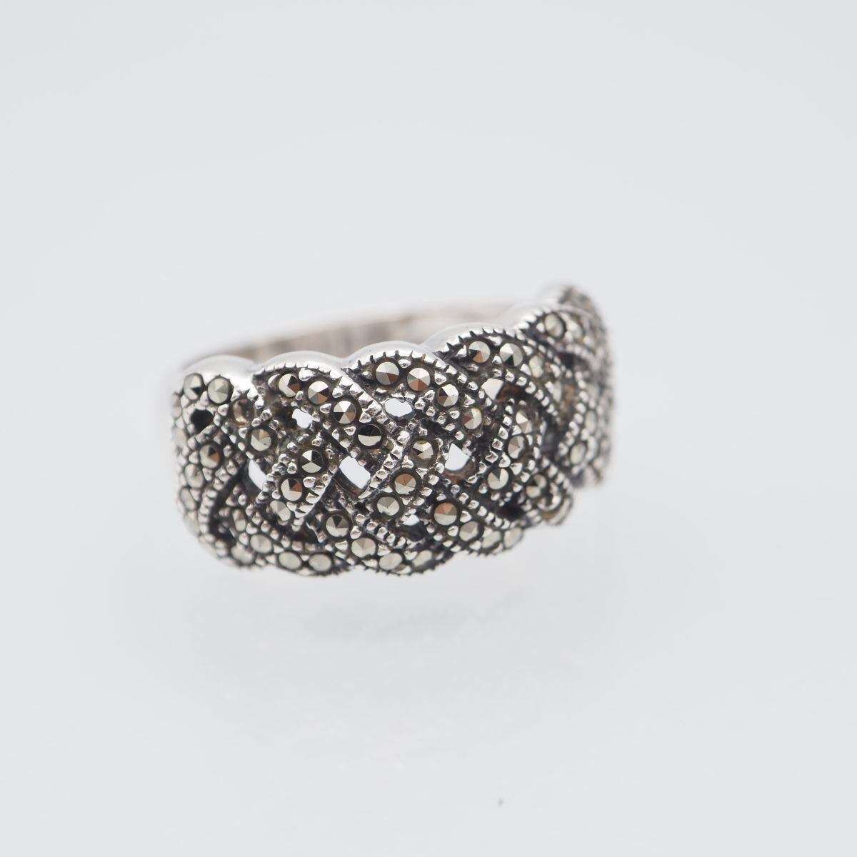 B582 ヴァンドームブティック VB 925刻印 リング マーカサイト マルカジット 編み込み デザイン シルバー 指輪 VENDOME BOUTIQUE 14号
