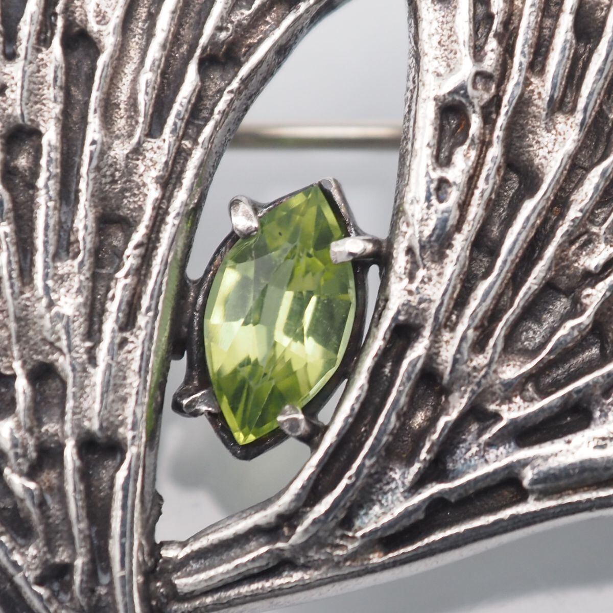 C195 ペリドット SILVER刻印 ブローチ 銀杏 イチョウ デザイン シルバー ヴィンテージ 8月誕生石