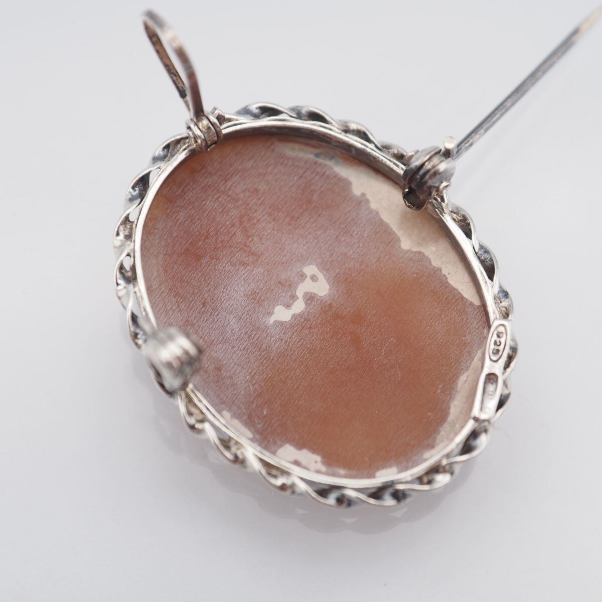 C130 シェルカメオ 925刻印 ブローチ 女性横顔 デザイン シルバー ヴィンテージ