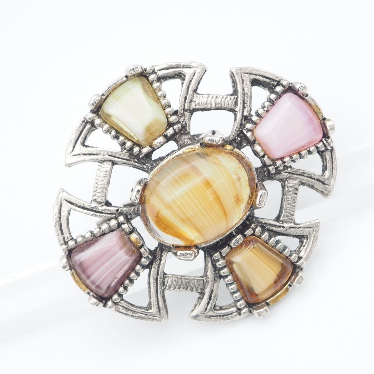C357 イギリス ヴィンテージ WEINER ブローチ ケルトジュエリー 天然石風 デザイン 英国 アンティーク