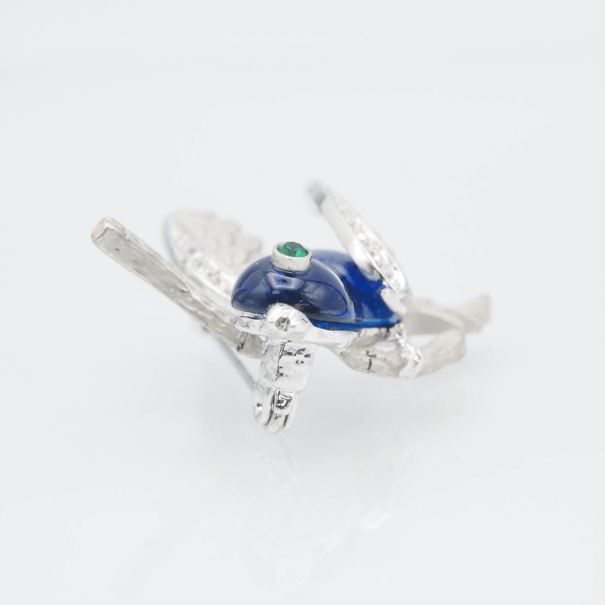 C149 ブローチ バード ラインストーン ブルー デザイン シルバー コスチュームジュエリー