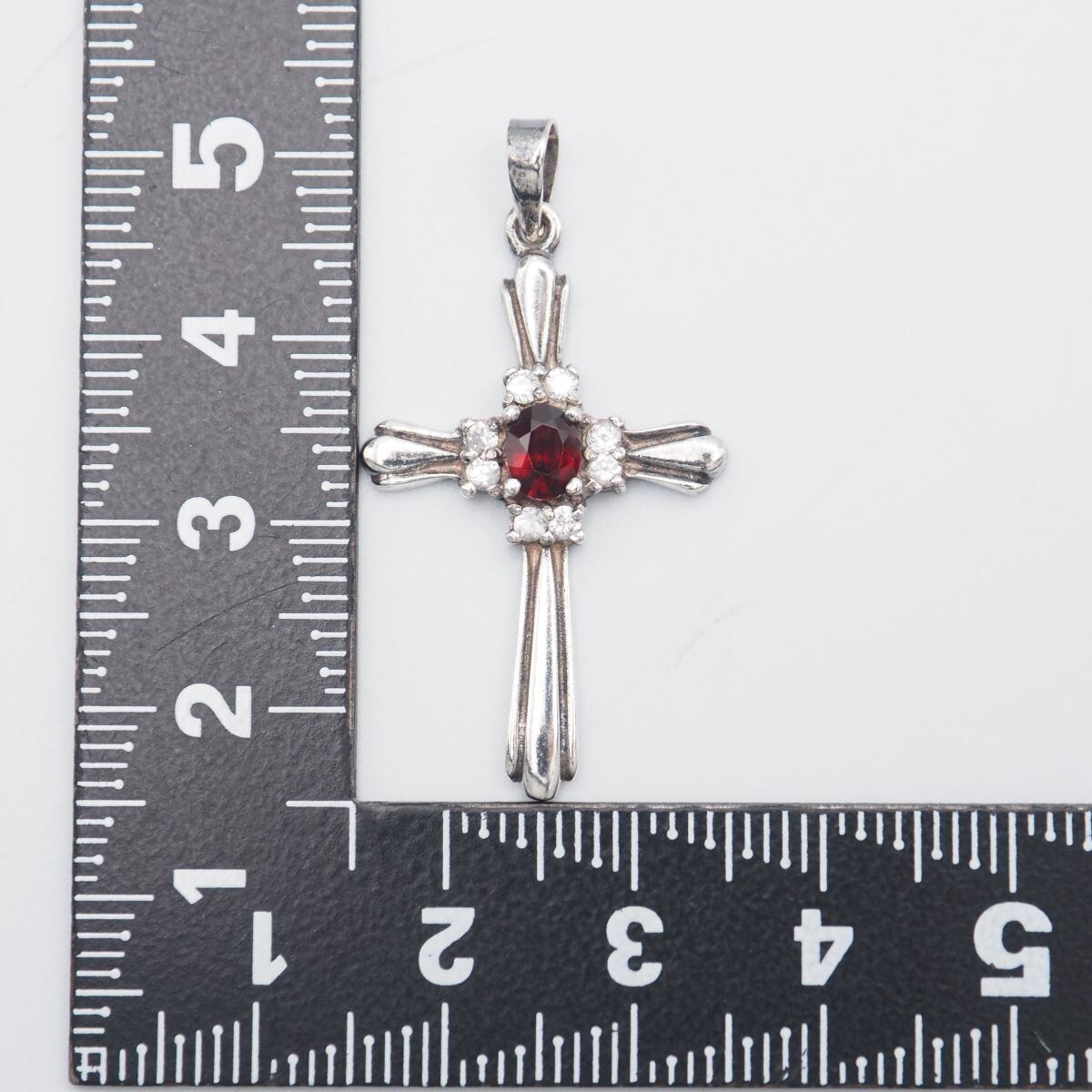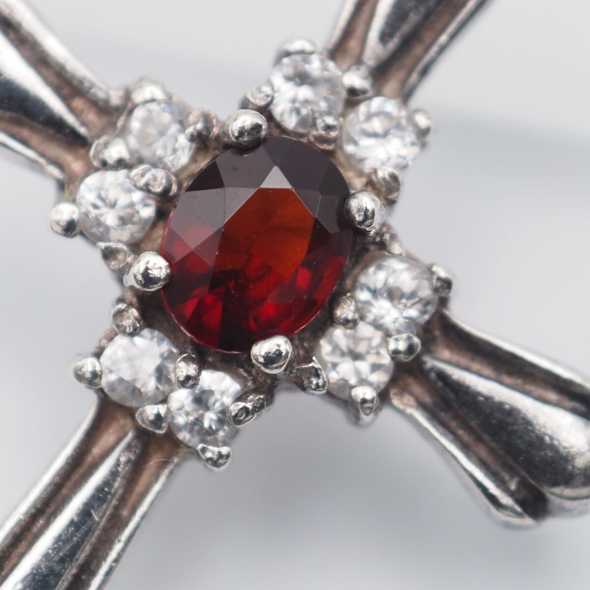 C146 ガーネット ダイヤモンド風 925刻印 ペンダント トップ クロス デザイン シルバー チャーム ヘッド ヴィンテージ 1月誕生石