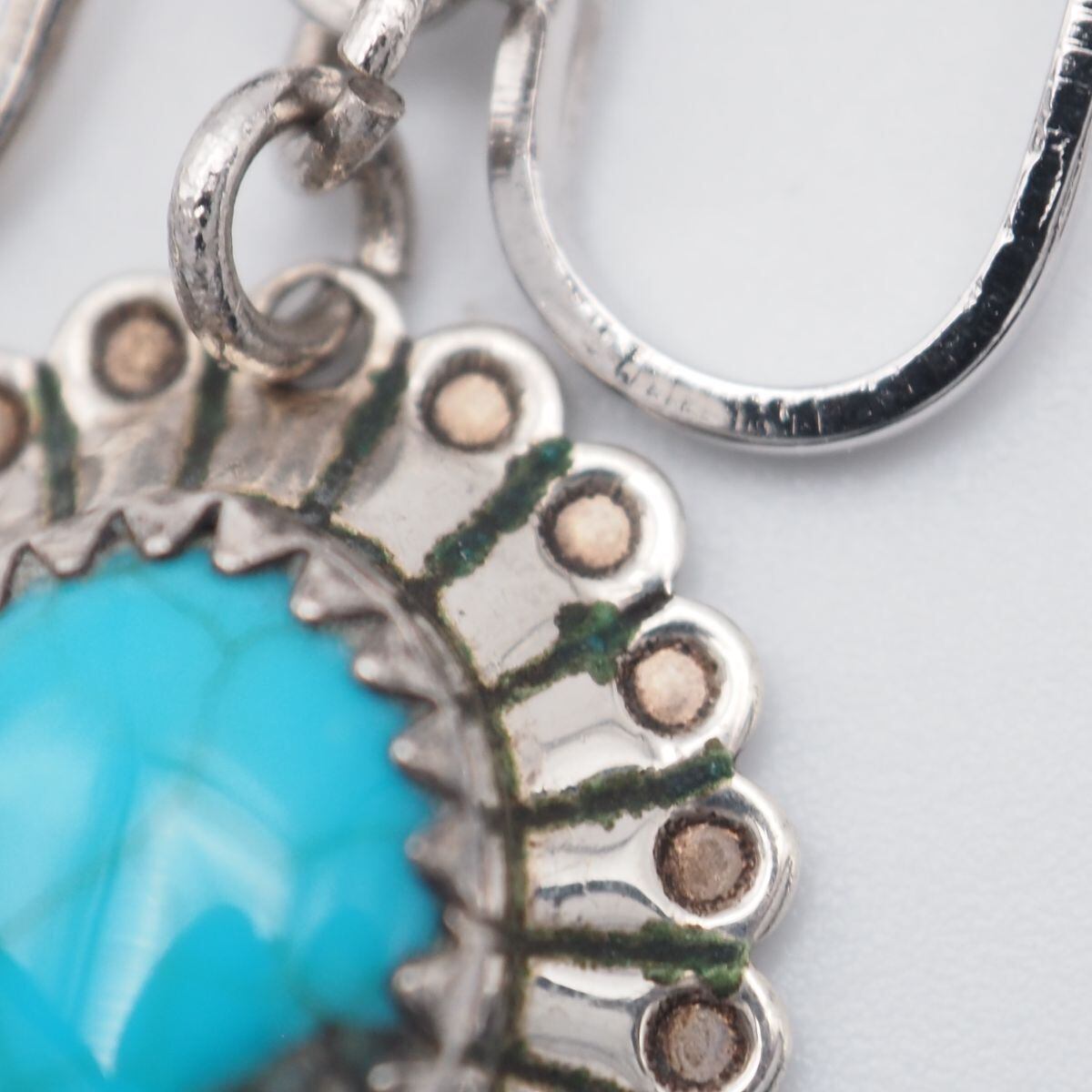 C121 ナバホ ターコイズ トルコ石 シェル STER刻印 イヤリング フェザー 羽 デザイン シルバー インディアンジュエリー 12月誕生石