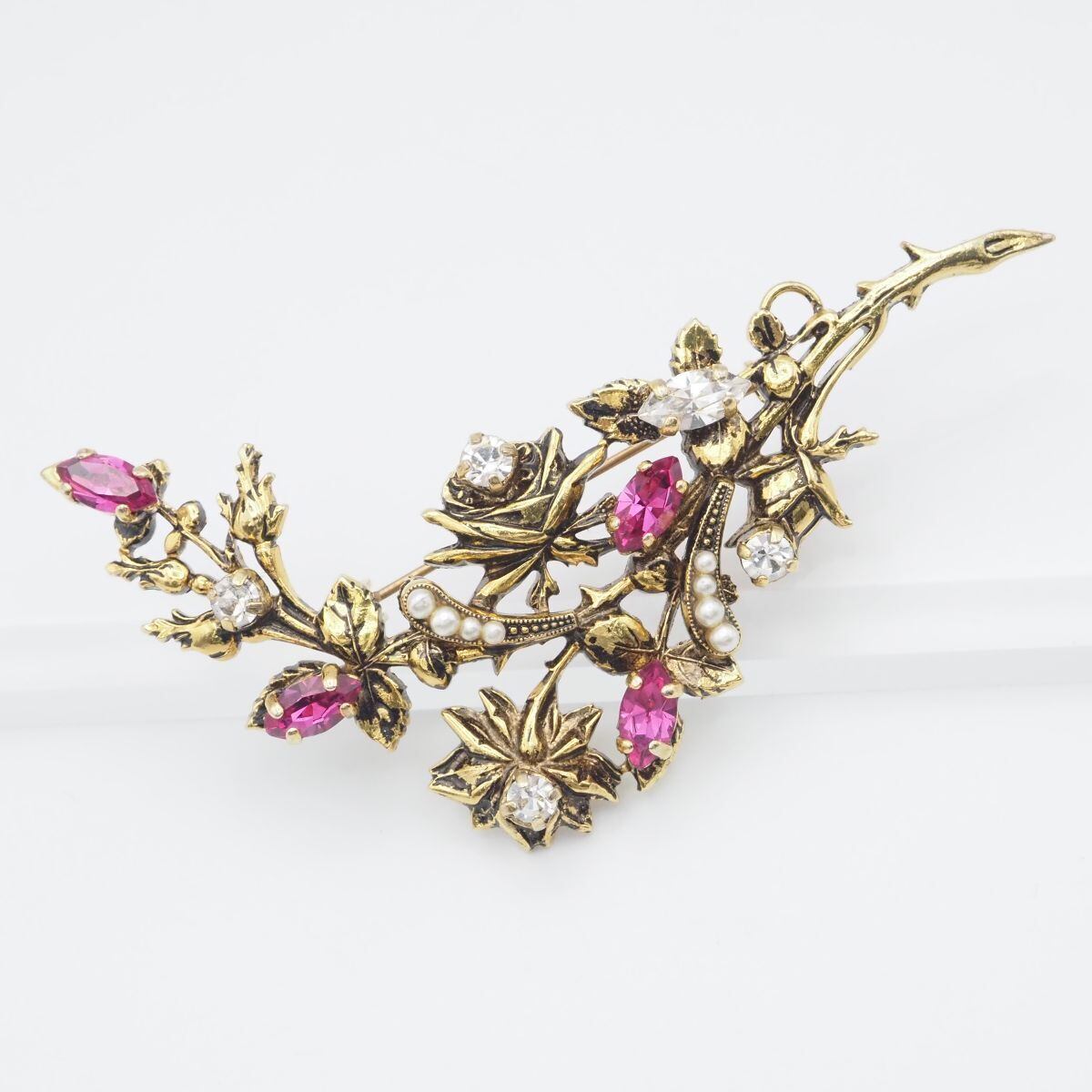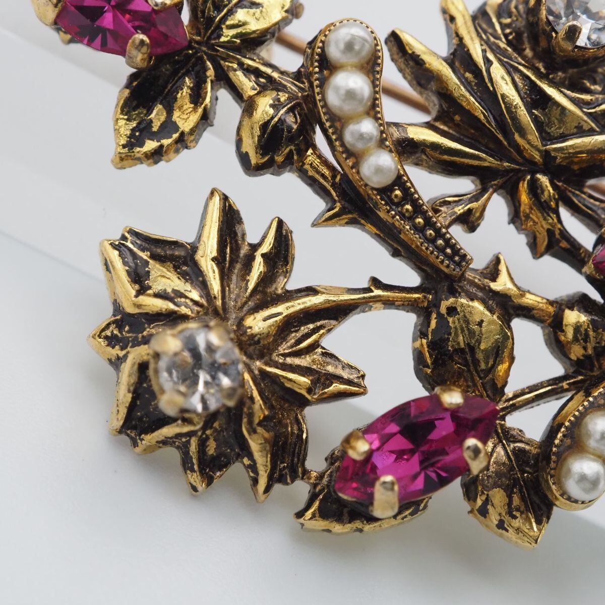 C327 Mulu REGGIO E. ブローチ カラーストーン風 フェイクパール フラワー ゴールド デザイン