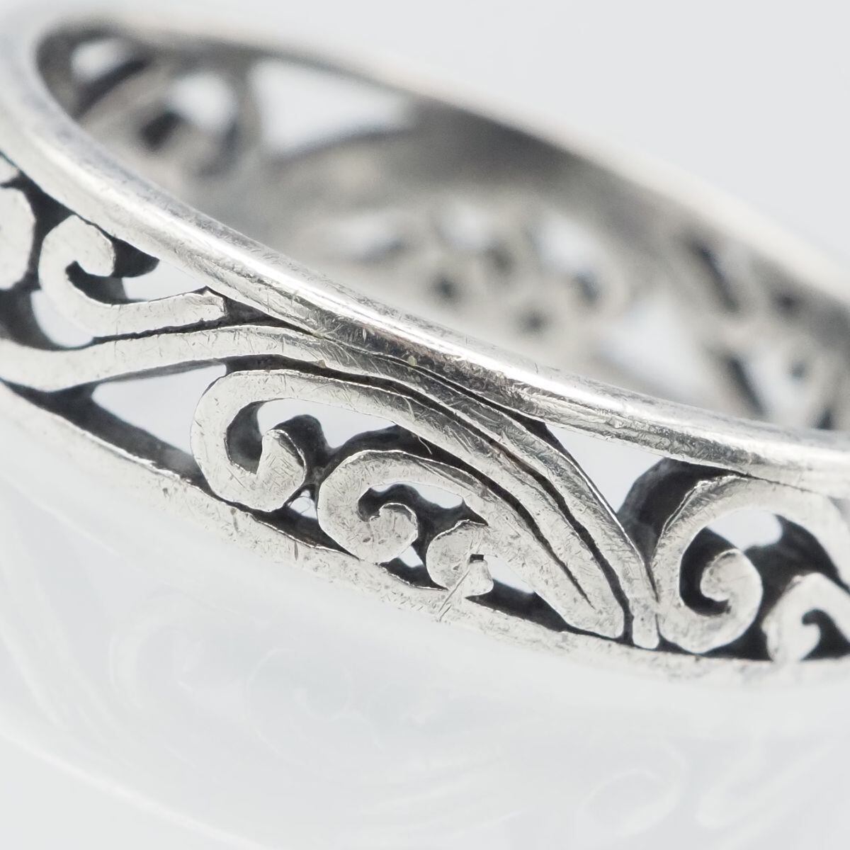 C285 ヴィンテージ 925刻印 リング 透かし彫り 波 デザイン シルバー 指輪 12号