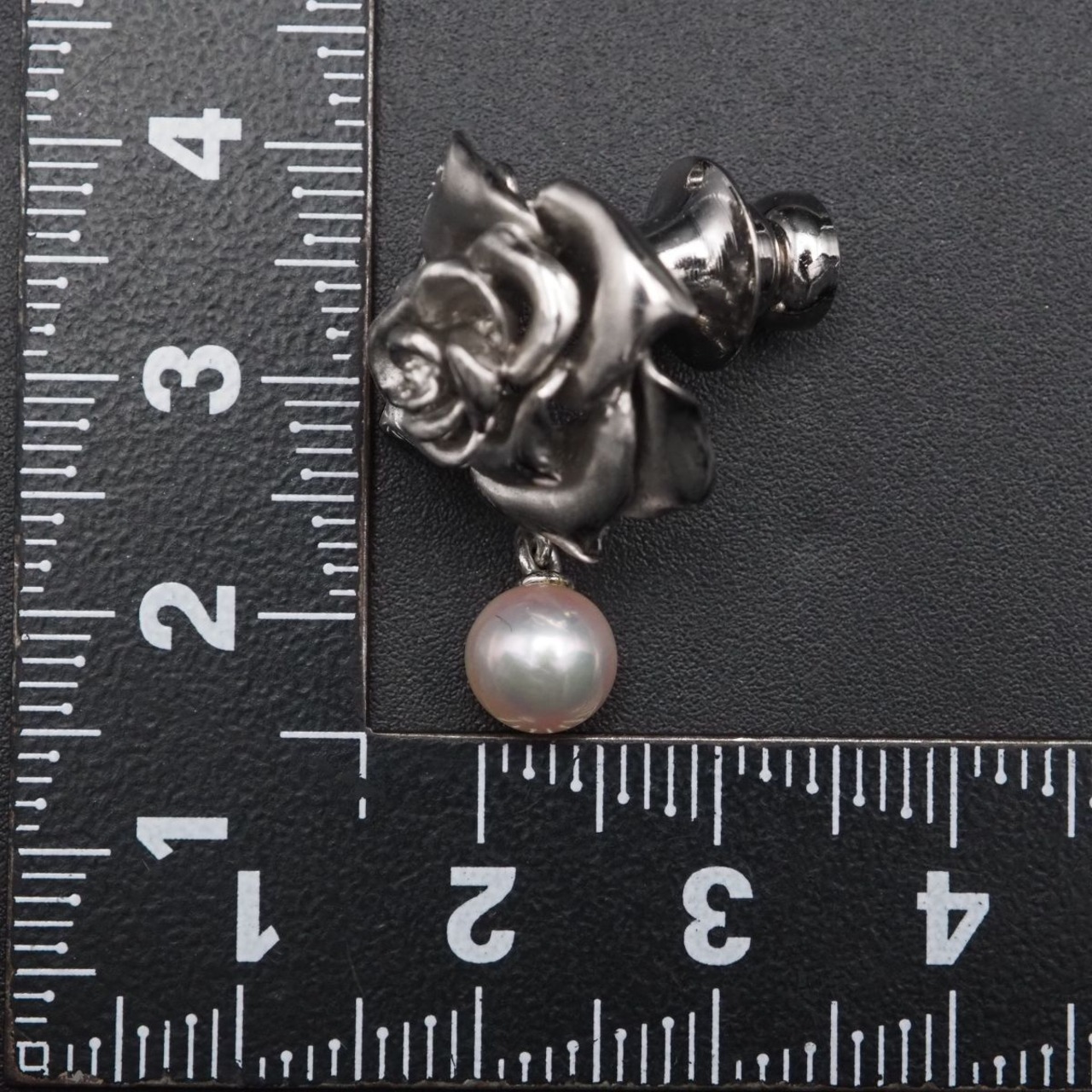 F926 本真珠 6.5mm珠 パール SILVER刻印 ピンブローチ 薔薇 バラ ローズ デザイン シルバー ラペルピン 6月誕生石