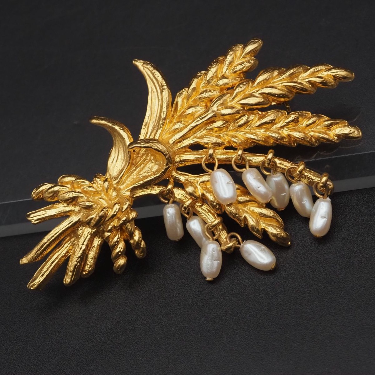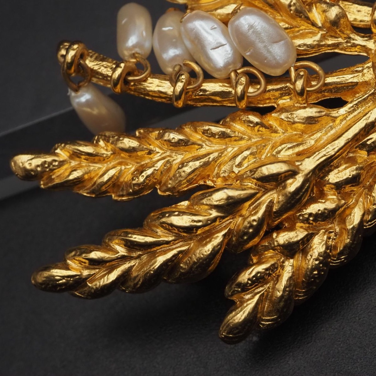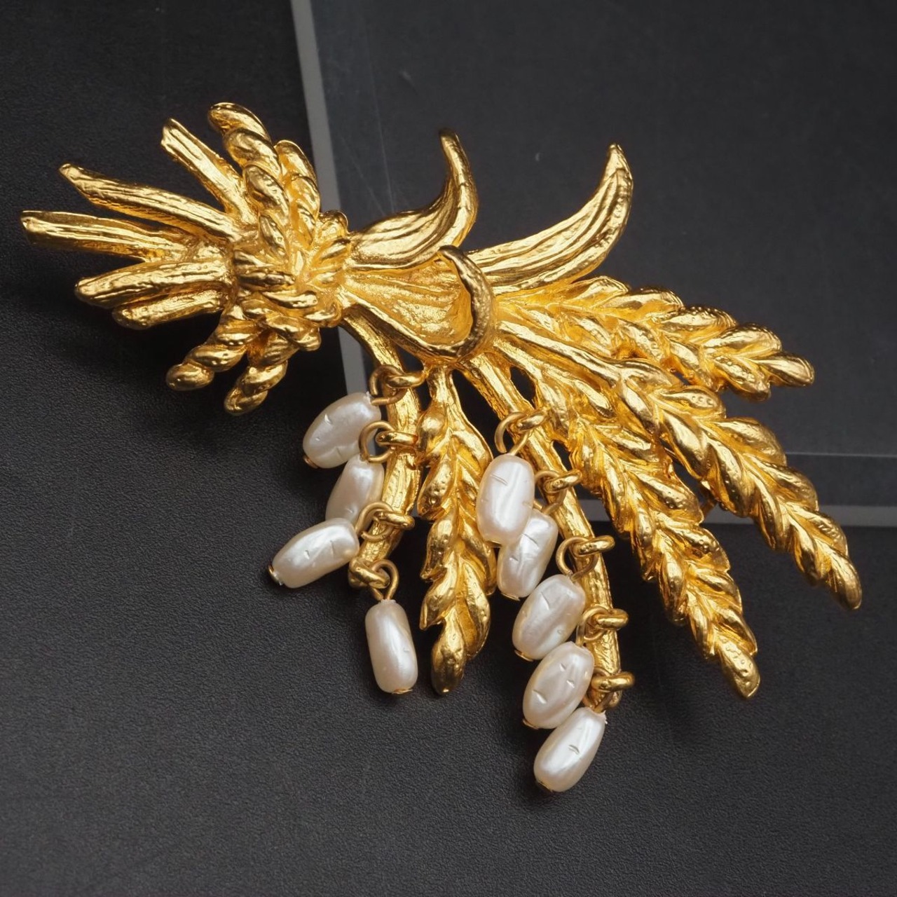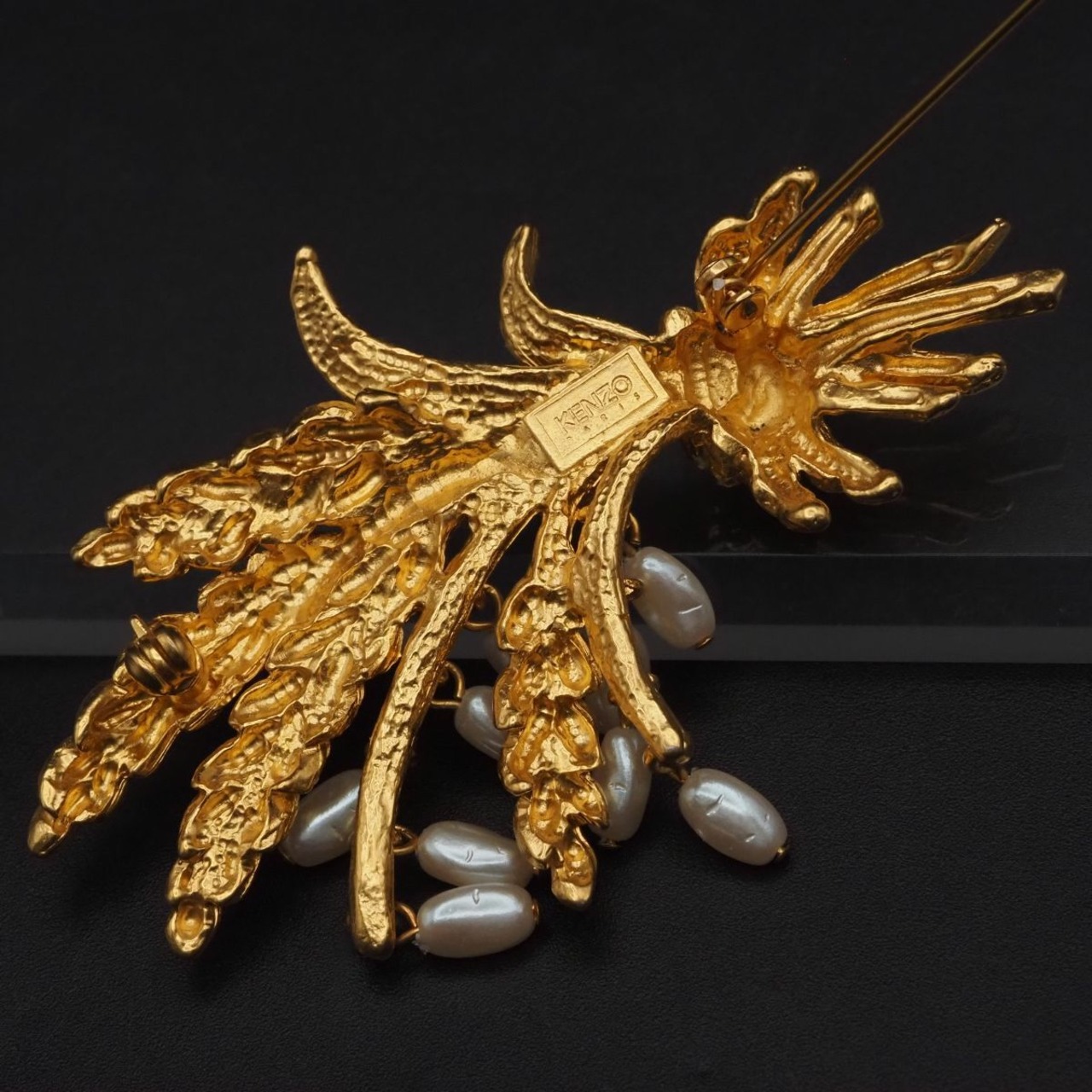 F876 KENZO ケンゾー ブローチ 大ぶり フェイクパール ゴールド デザイン