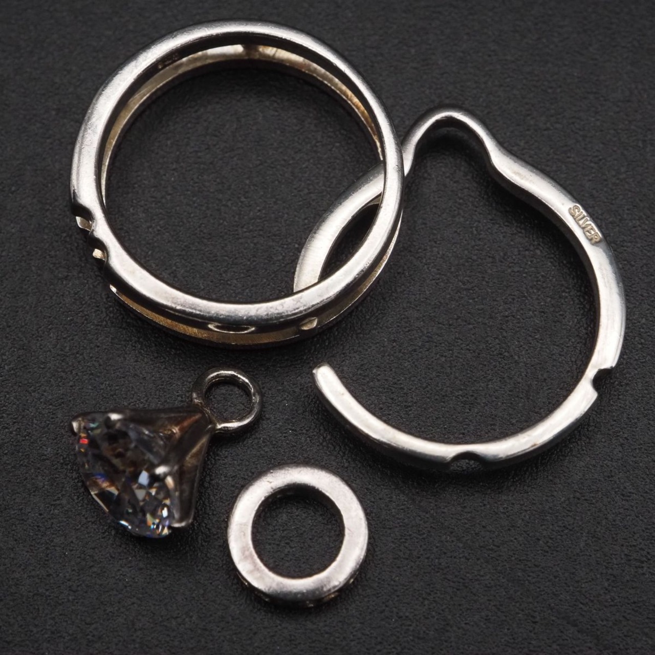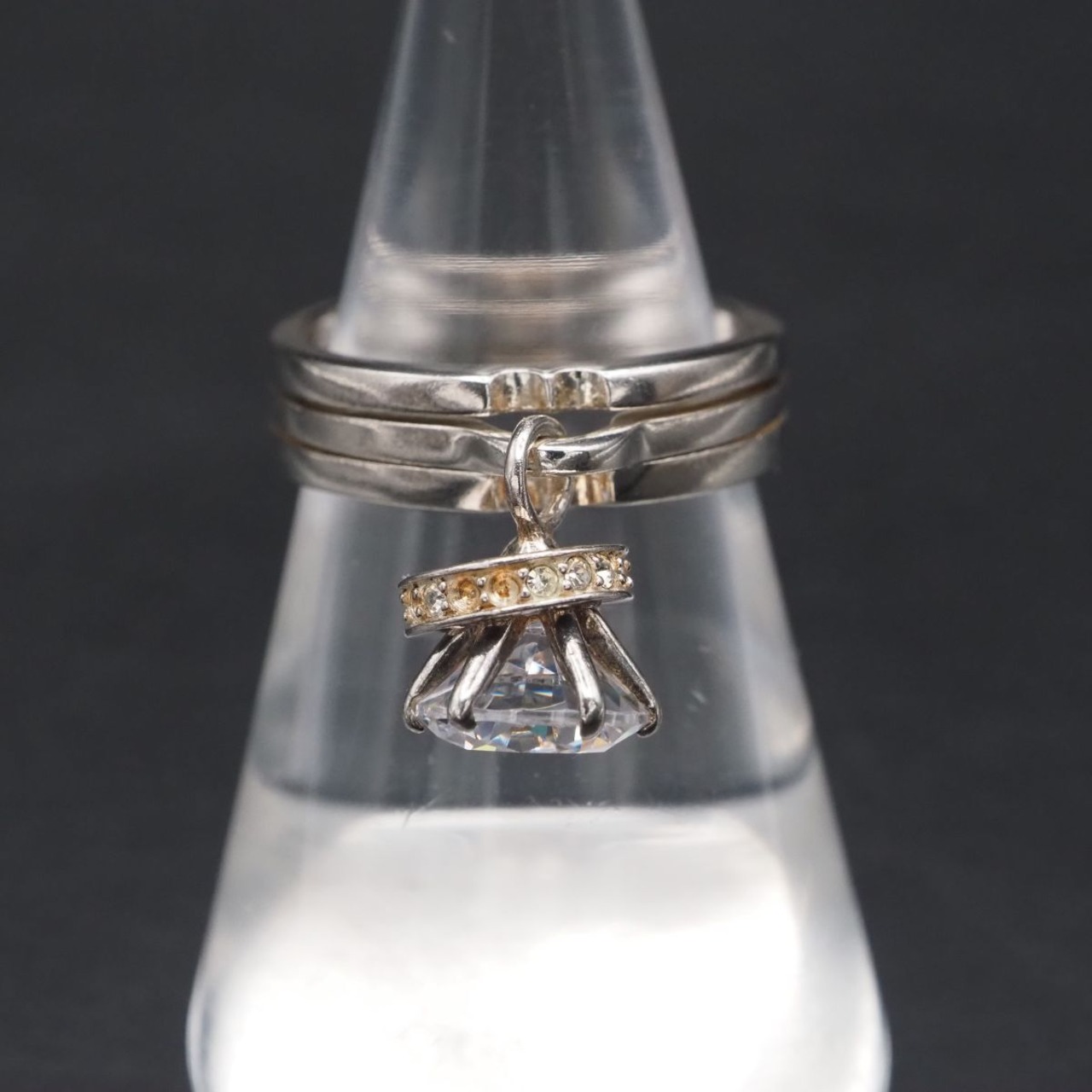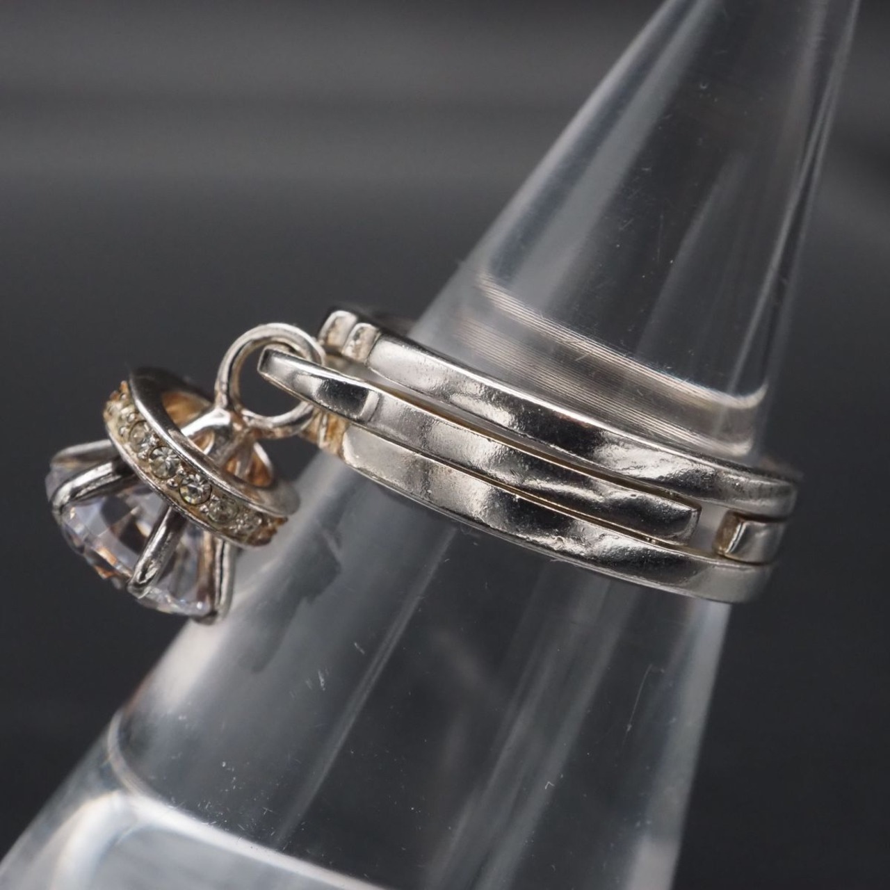 F832 ダイヤモンド風 SILVER925刻印 リング チャーム ラインストーン デザイン シルバー 指輪 11号