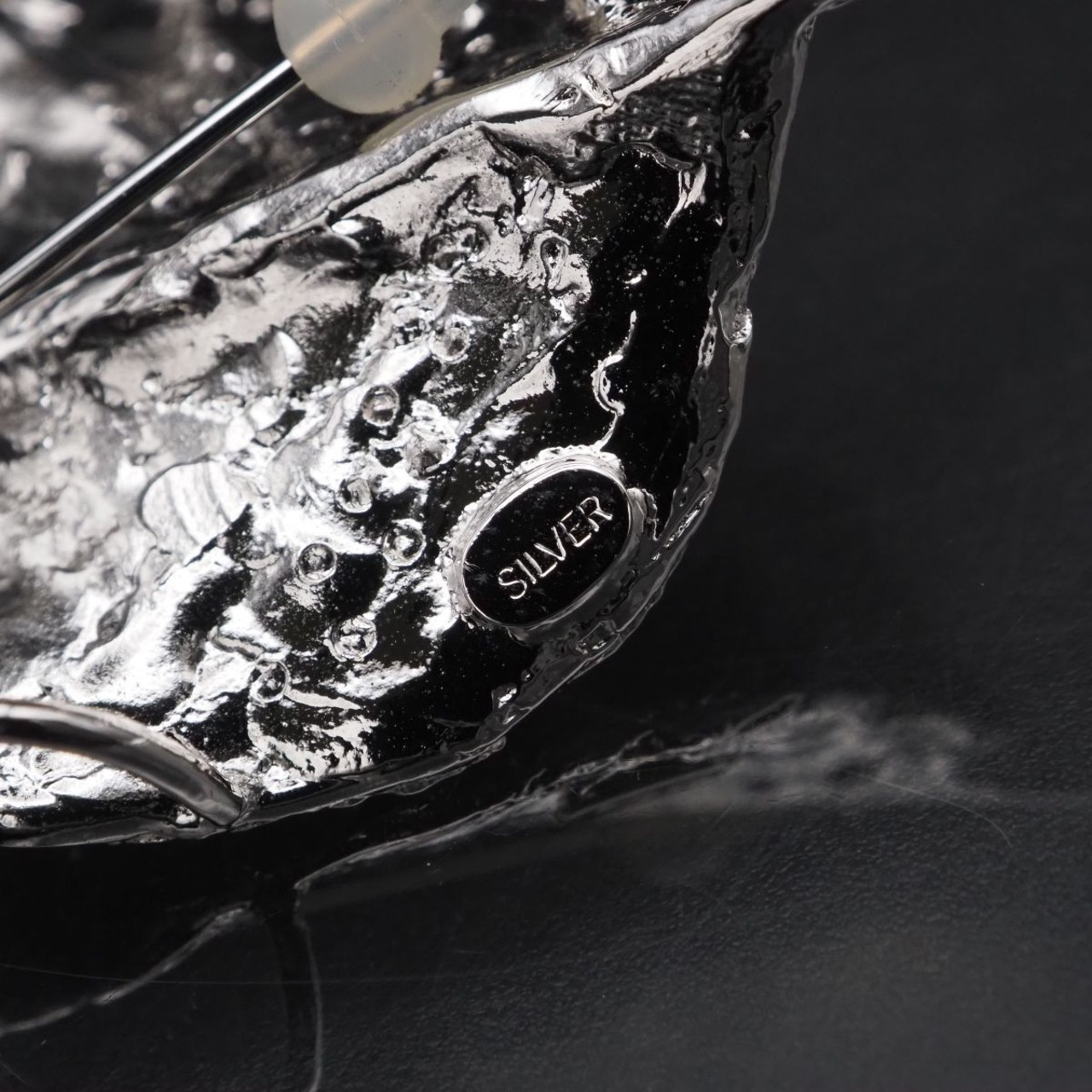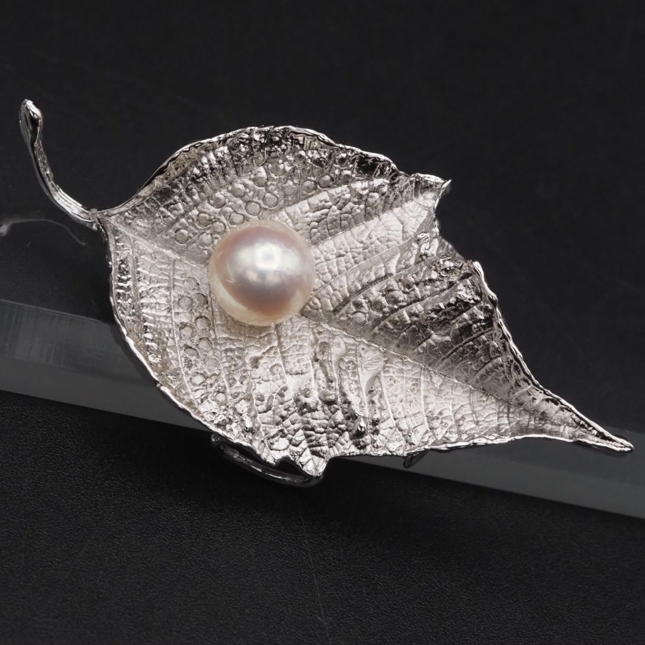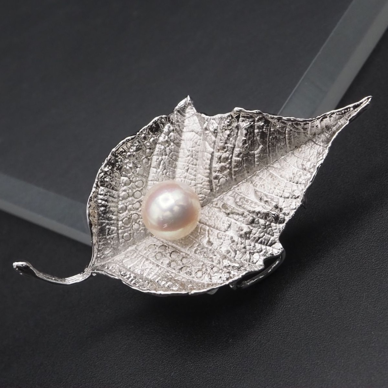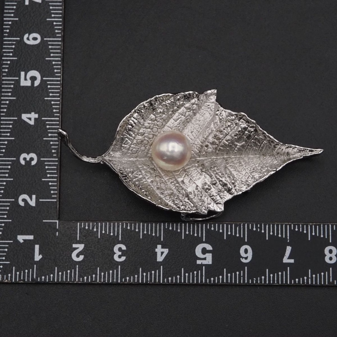 F786 本真珠 9.5mm珠 パール SILVER刻印 ブローチ リーフ デザイン シルバー コサージュ 6月誕生石