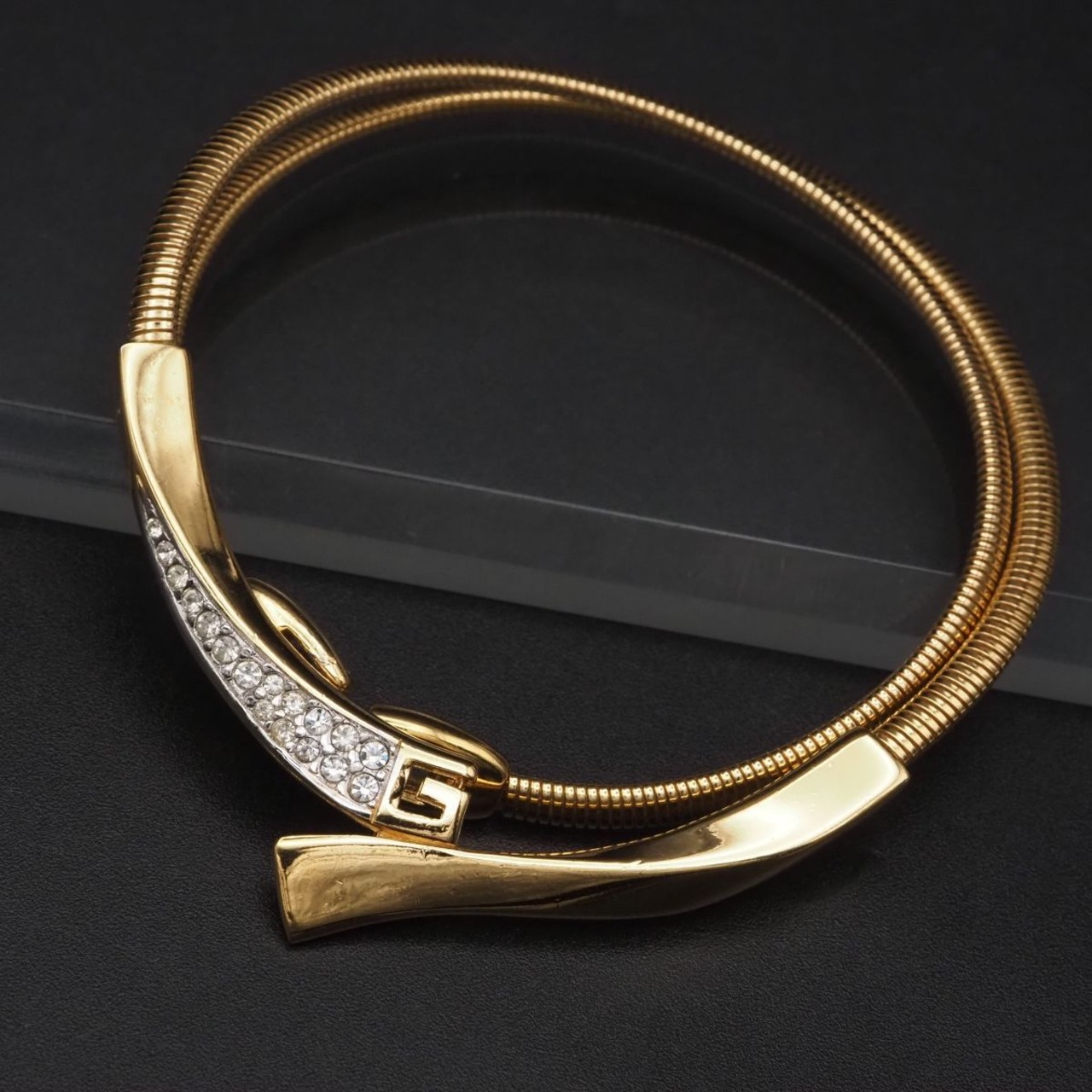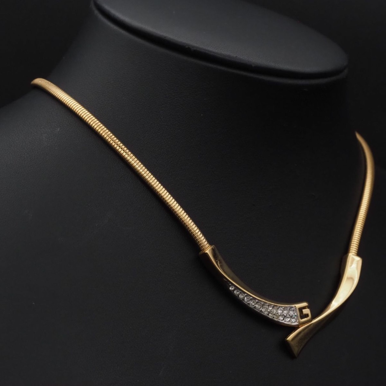 F768 ジバンシイ GIVENCHY PARIS NEW YORK ネックレス ラインストーン ロゴ ゴールド デザイン