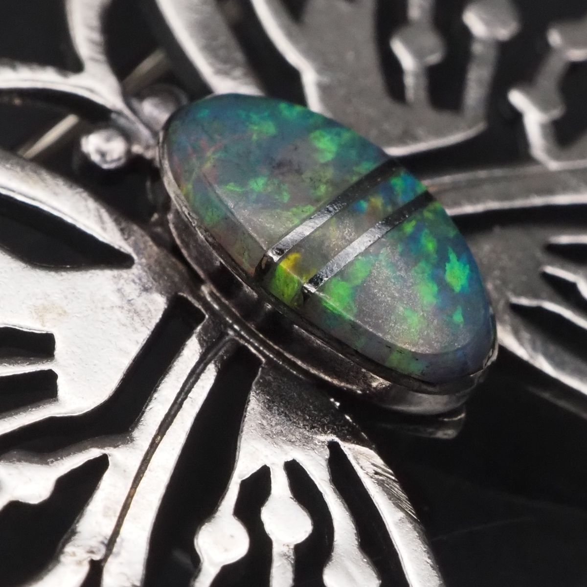F954 オパール 925刻印 ブローチ 蝶 バタフライ 透かし彫り デザイン シルバー 10月誕生石