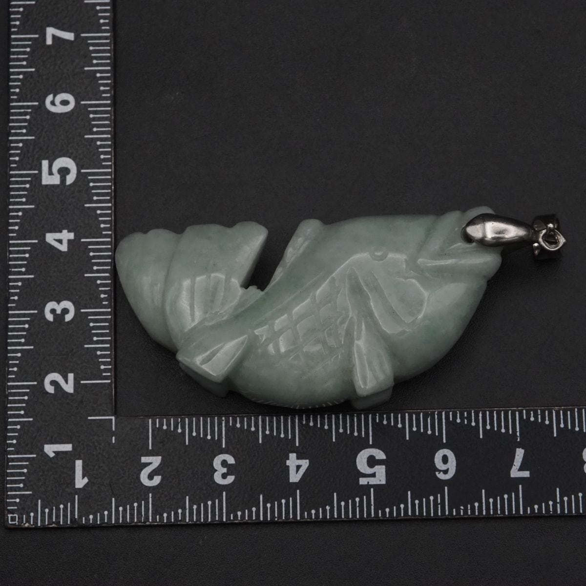 G331 翡翠? ヒスイ? 18KGP XP刻印 ペンダント トップ 魚彫刻 フィッシュ デザイン シルバー チャーム ヘッド