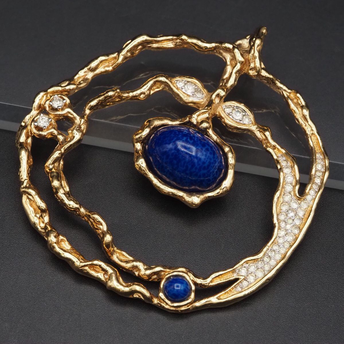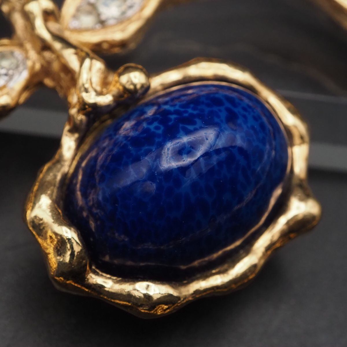 G198 特大 PANETTA パネッタ ペンダント トップ 大ぶり ブルーガラス ラインストーン ゴールド デザイン チャーム ヘッド