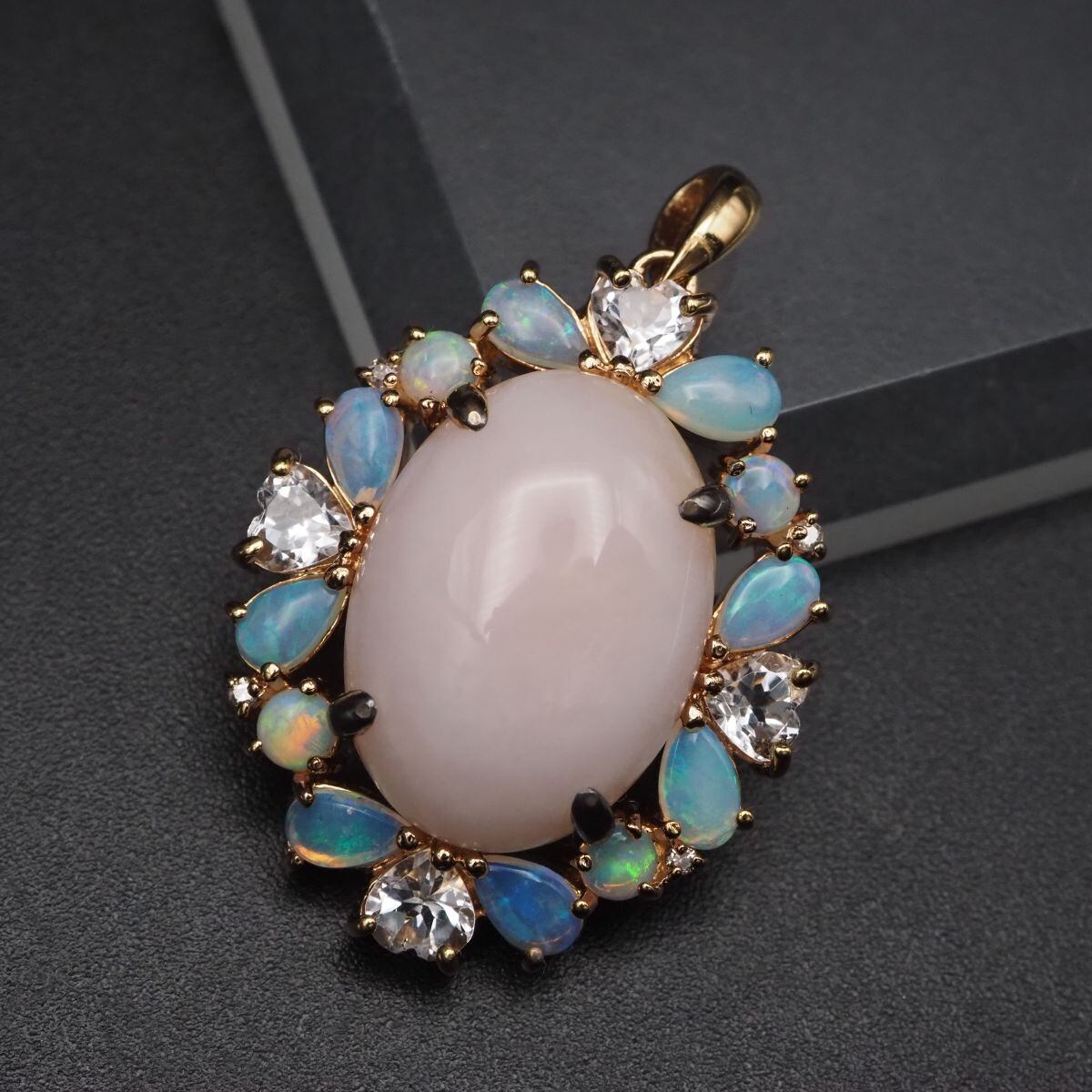 G199 IEI ピンクストーン オパール ダイヤモンド 0.03ct 925刻印 ペンダント トップ デザイン シルバー チャーム ヘッド 4月 10月誕生石