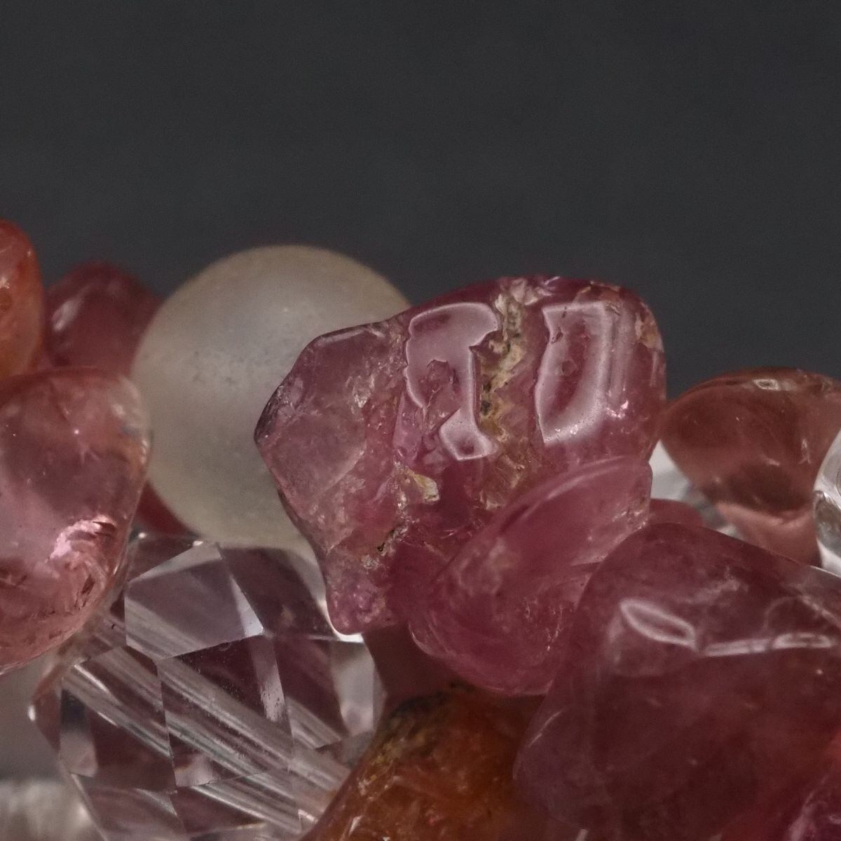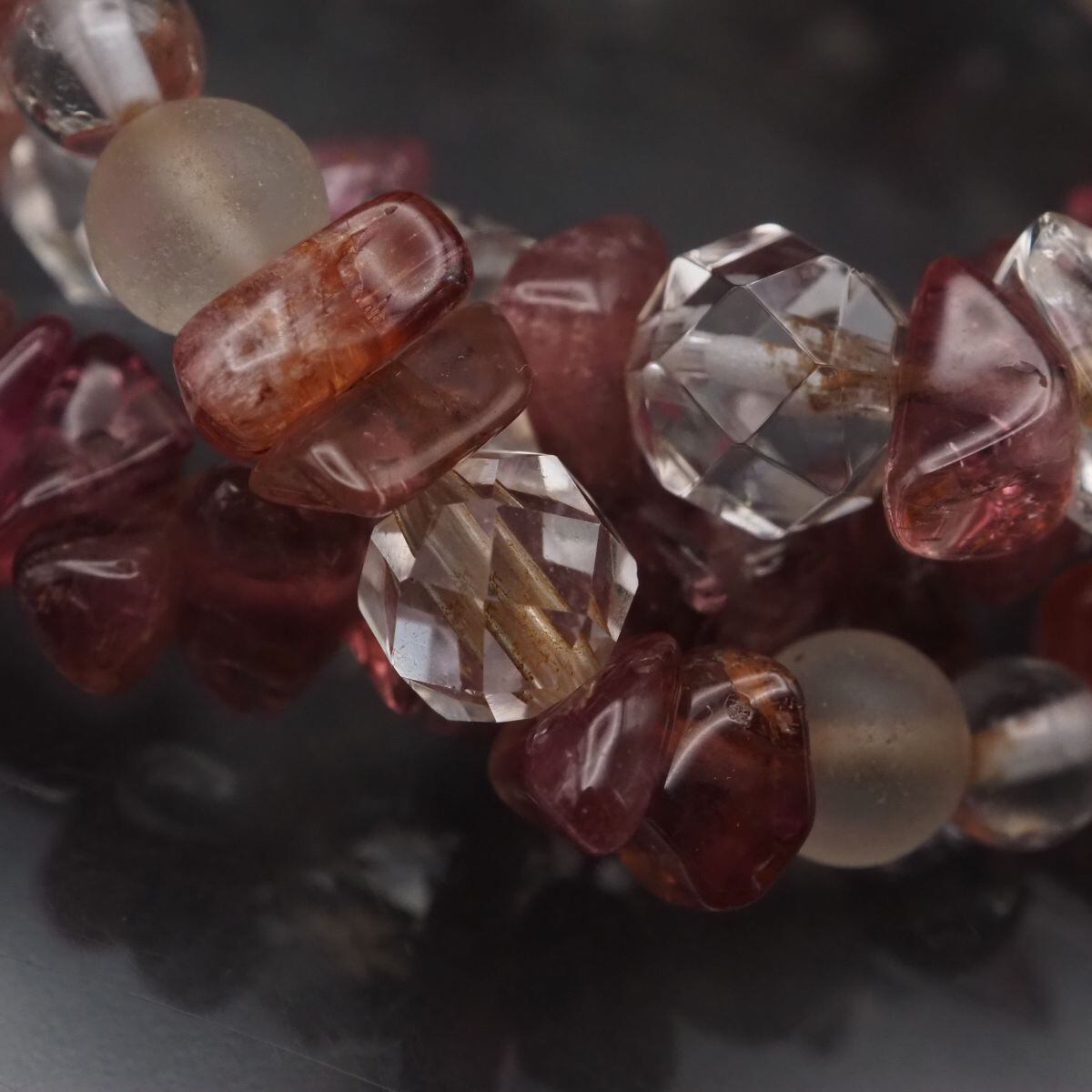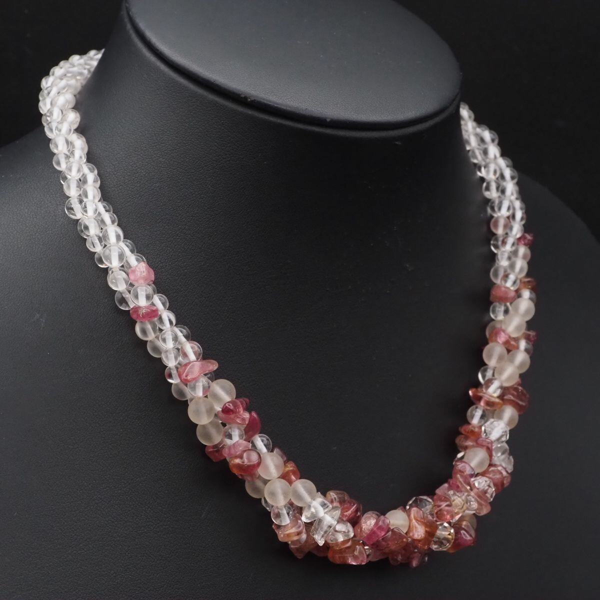 G024 ピンクトルマリン 水晶 GSILVER刻印 ネックレス 3連 デザイン シルバー